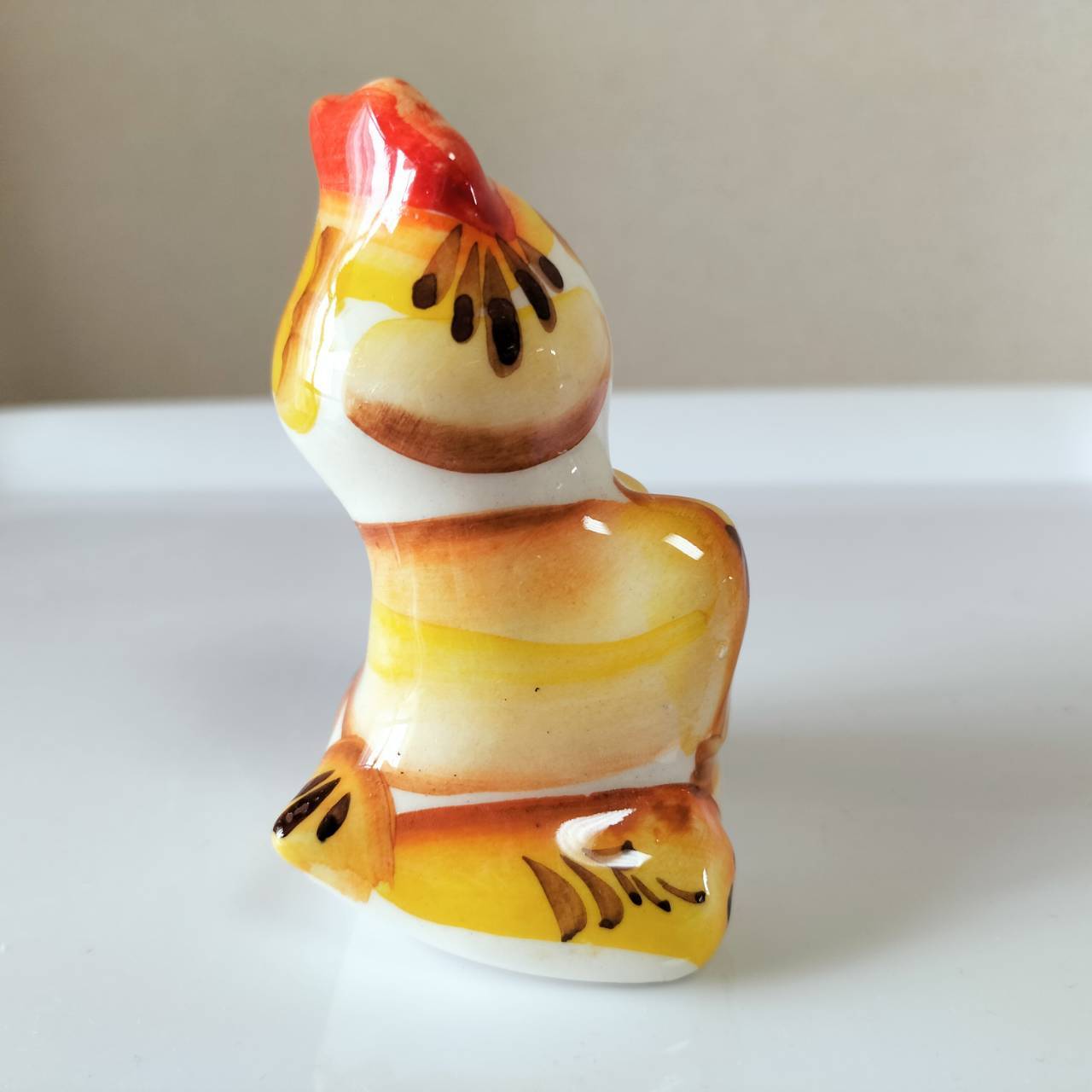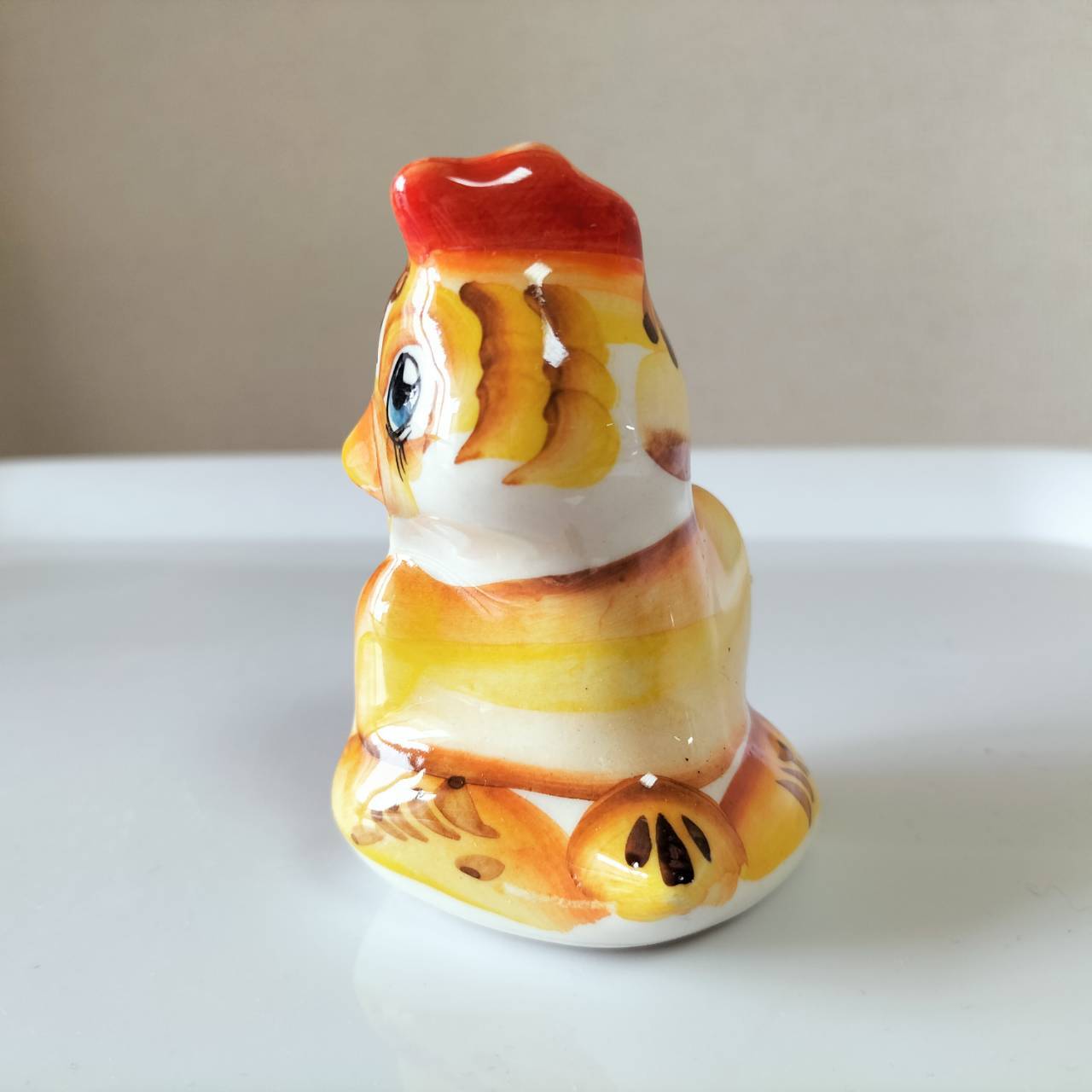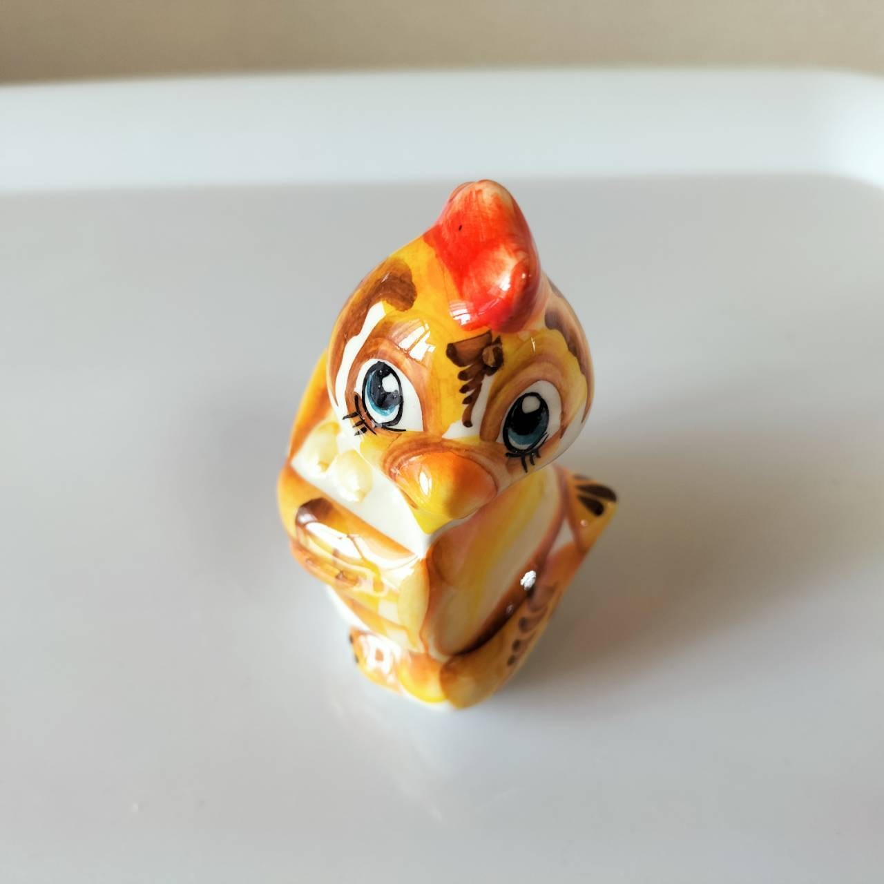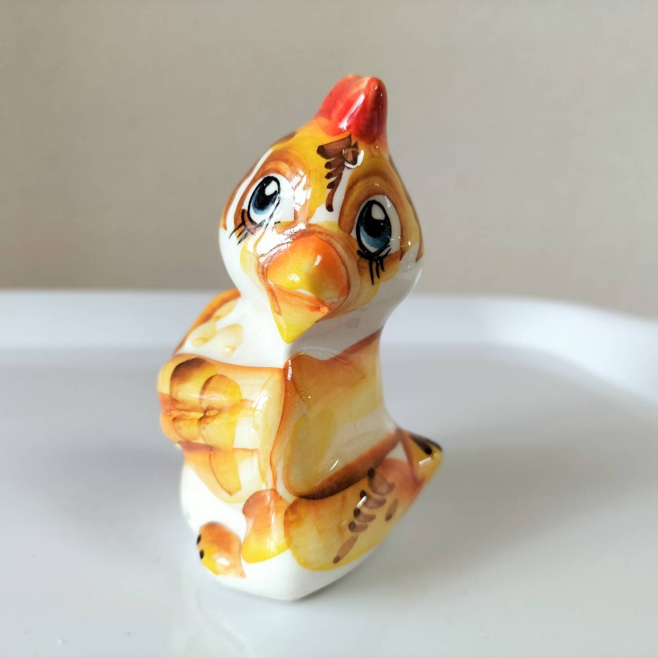 【GZ018】北欧ロシア雑貨 動物陶器 グジェリ焼 童話『金のたまご』のにわとり