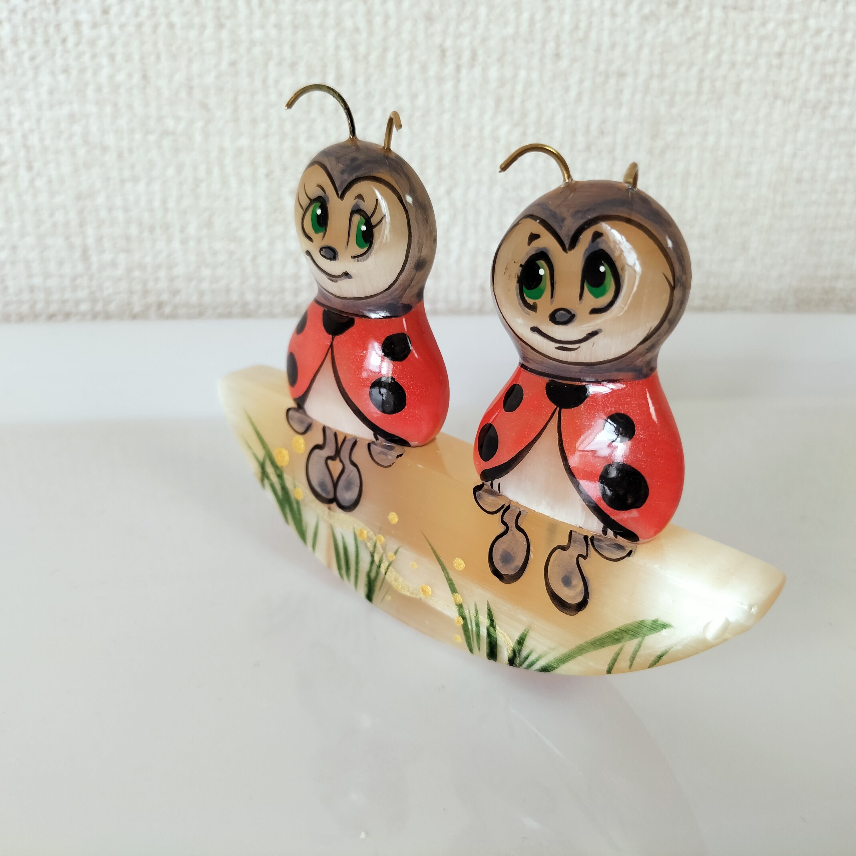 【CEL464】北欧ロシア雑貨天然石・セレナイト 水晶/ 文鎮・重石 てんとう虫の兄弟