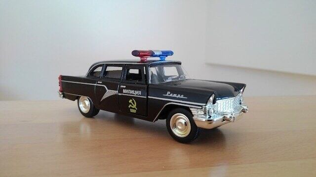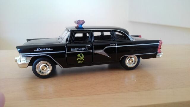 ロシアのミニカー(モデルカー)です。チャイカというクラシックカーで 、旧ソ連の警察専用公用車両です。