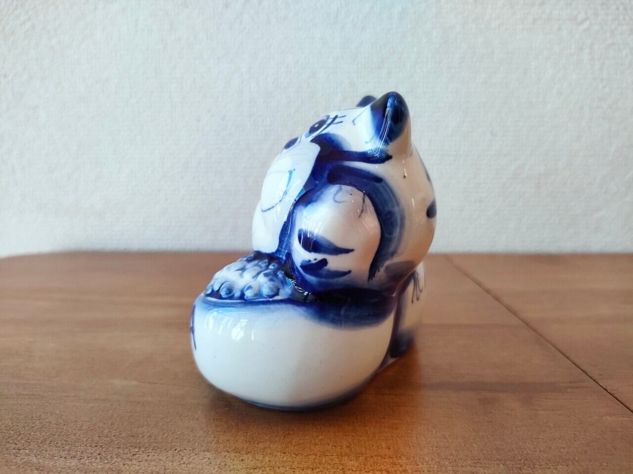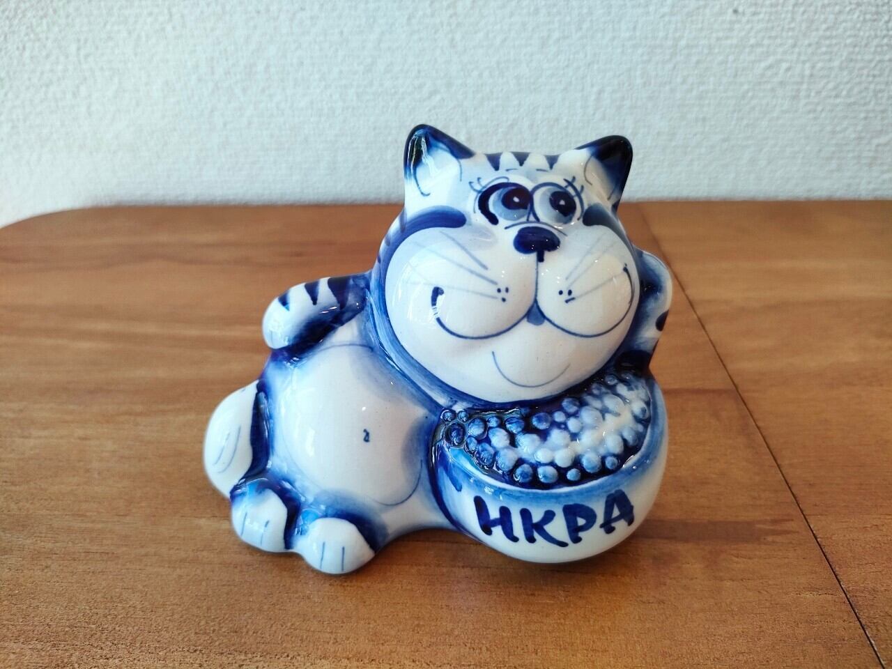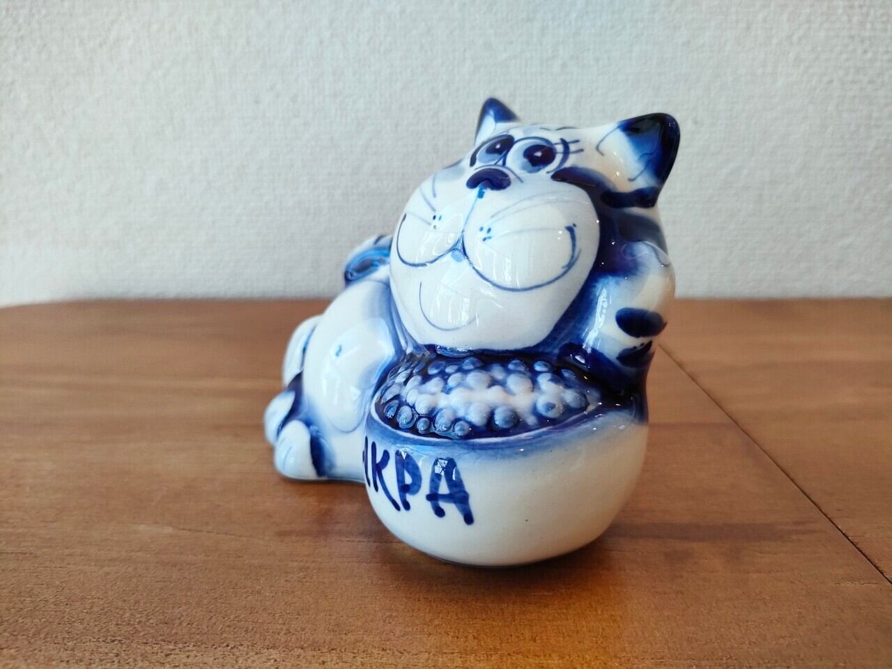 【GZ353】北欧ロシア雑貨 動物陶器 グジェリ焼 イクラをもつねこ