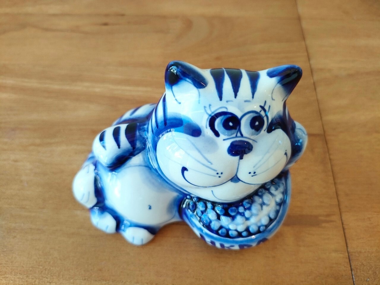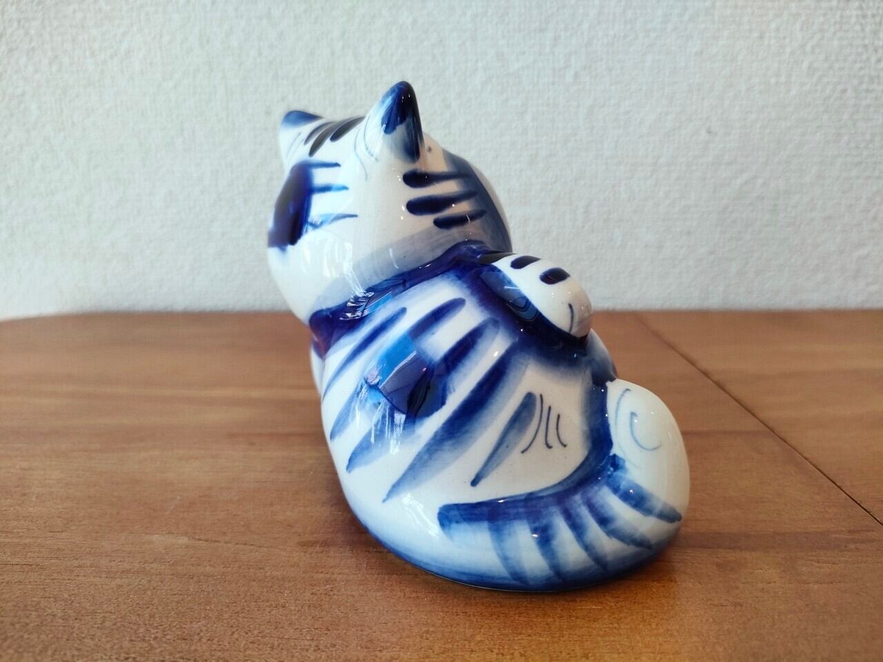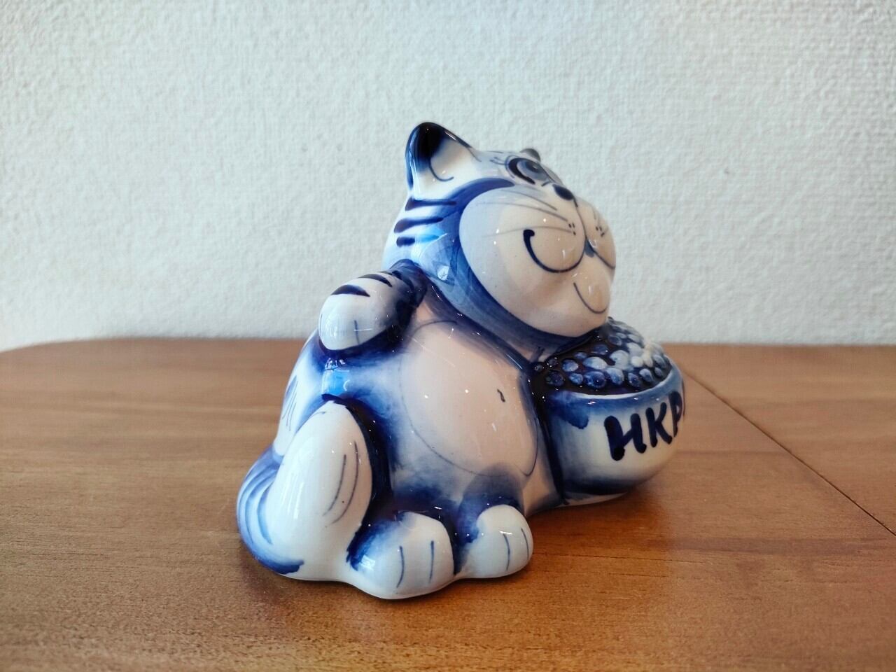 【GZ353】北欧ロシア雑貨 動物陶器 グジェリ焼 イクラをもつねこ