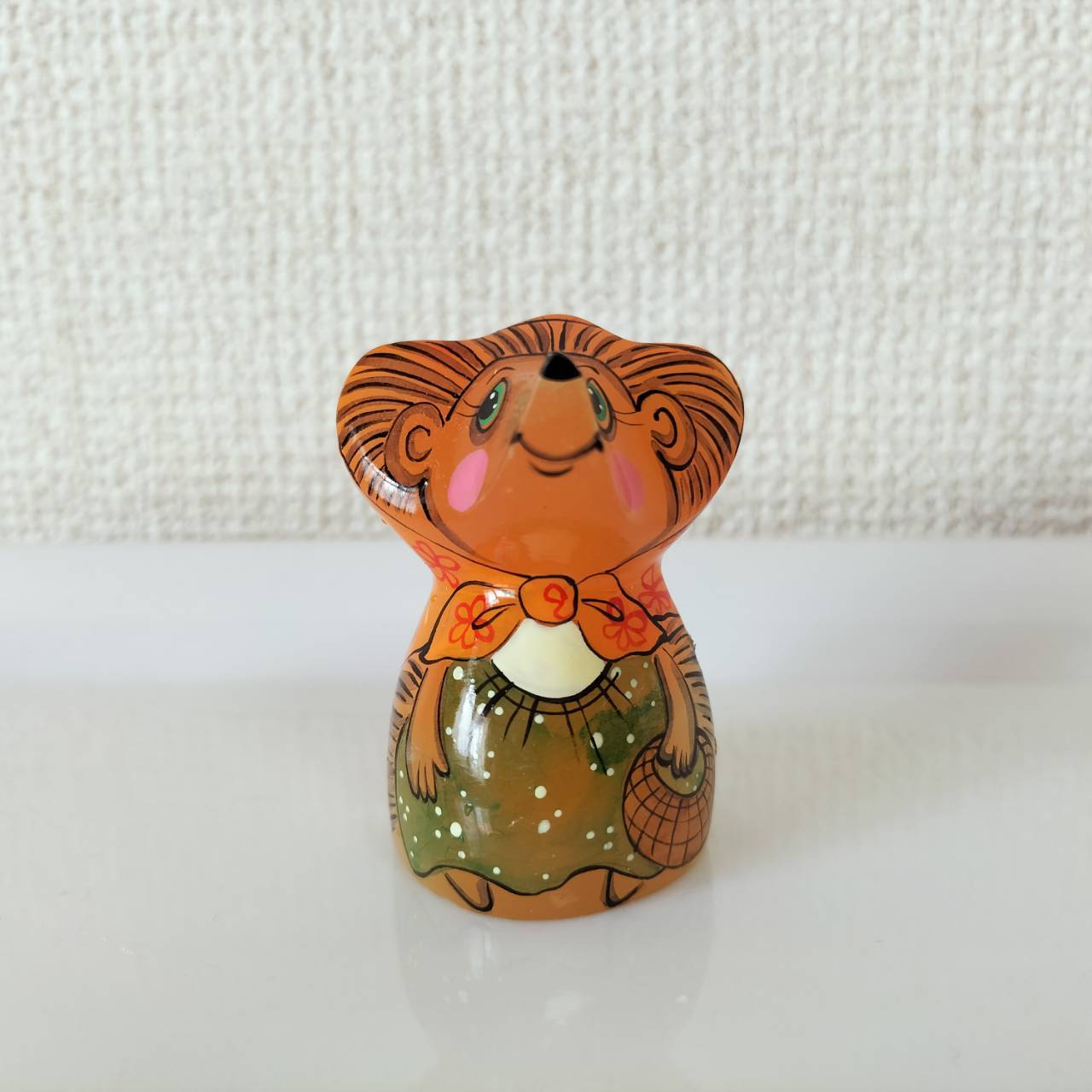 【CEL495】北欧ロシア雑貨天然石・セレナイト 水晶/ 文鎮・重石 はりねずみ母ちゃん