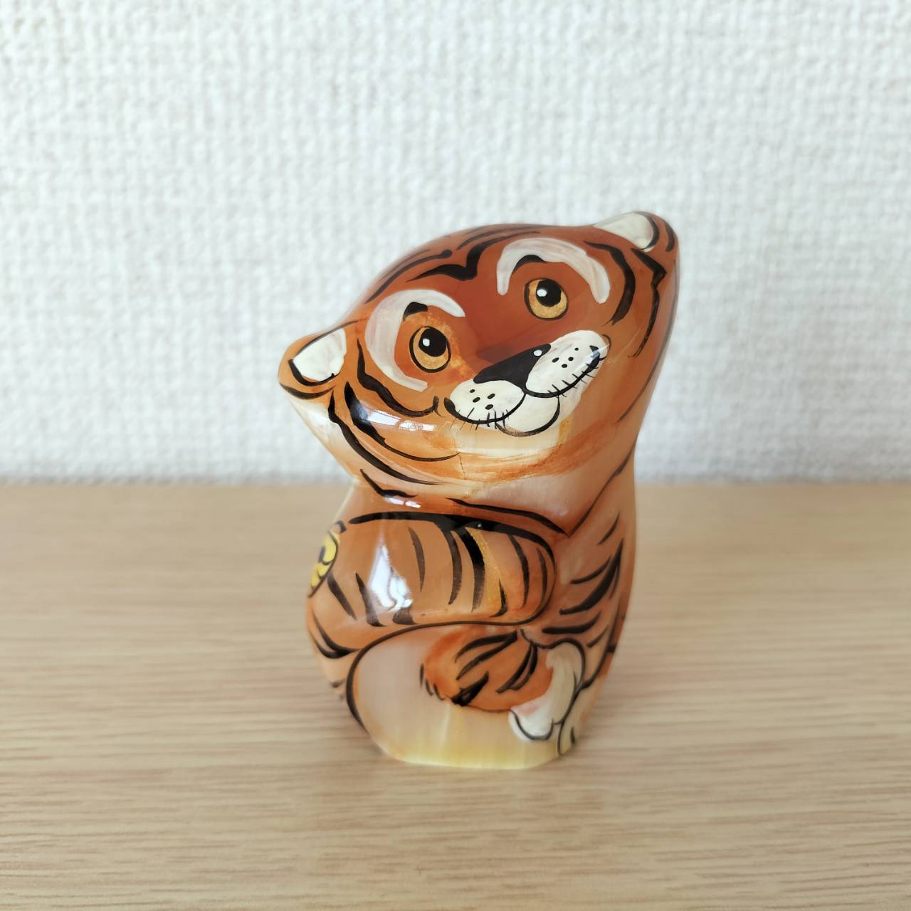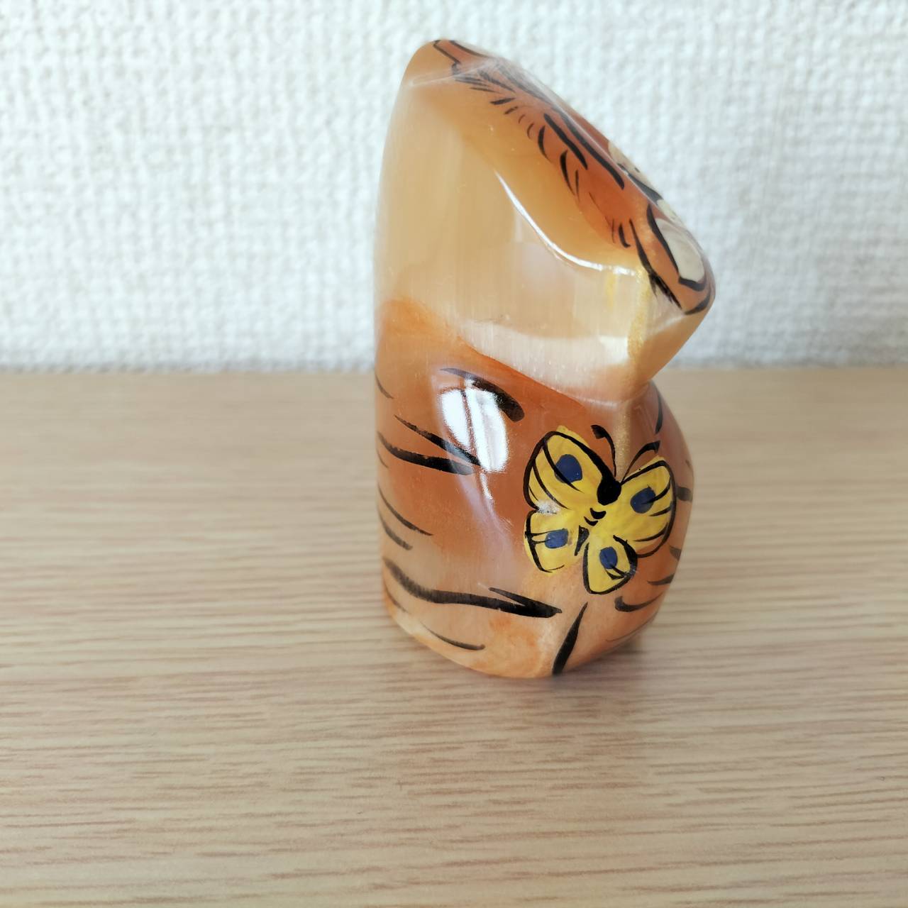 【CEL508】北欧ロシア雑貨天然石・セレナイト 水晶/ 文鎮・重石 とら