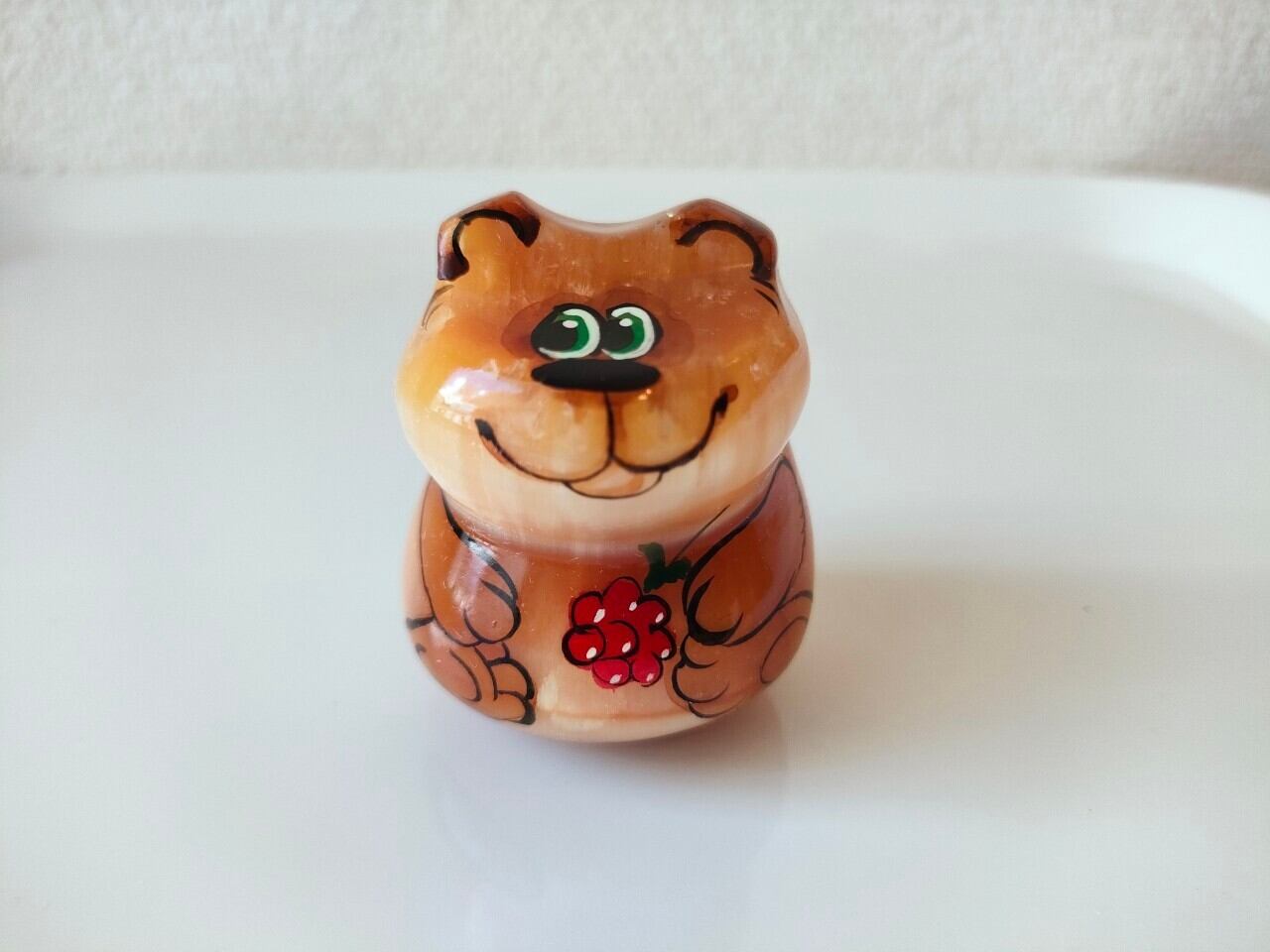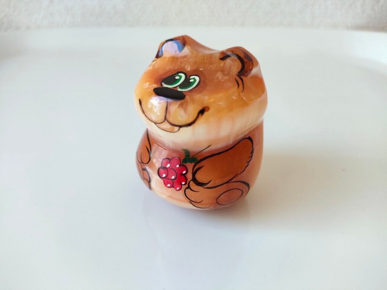 【CEL471】北欧ロシア雑貨天然石・セレナイト 水晶/ 文鎮・ペーパーウェイト 回転するくま