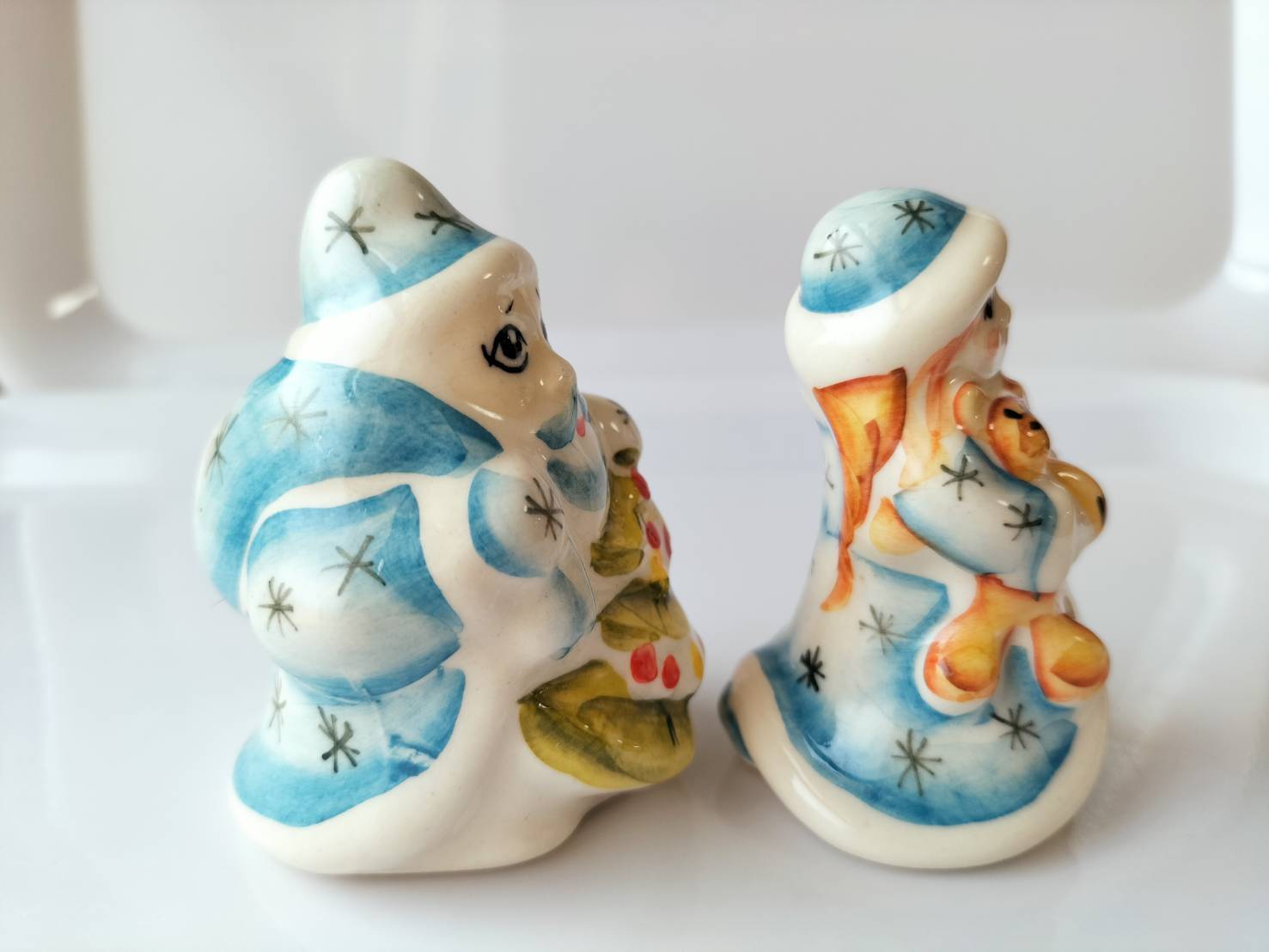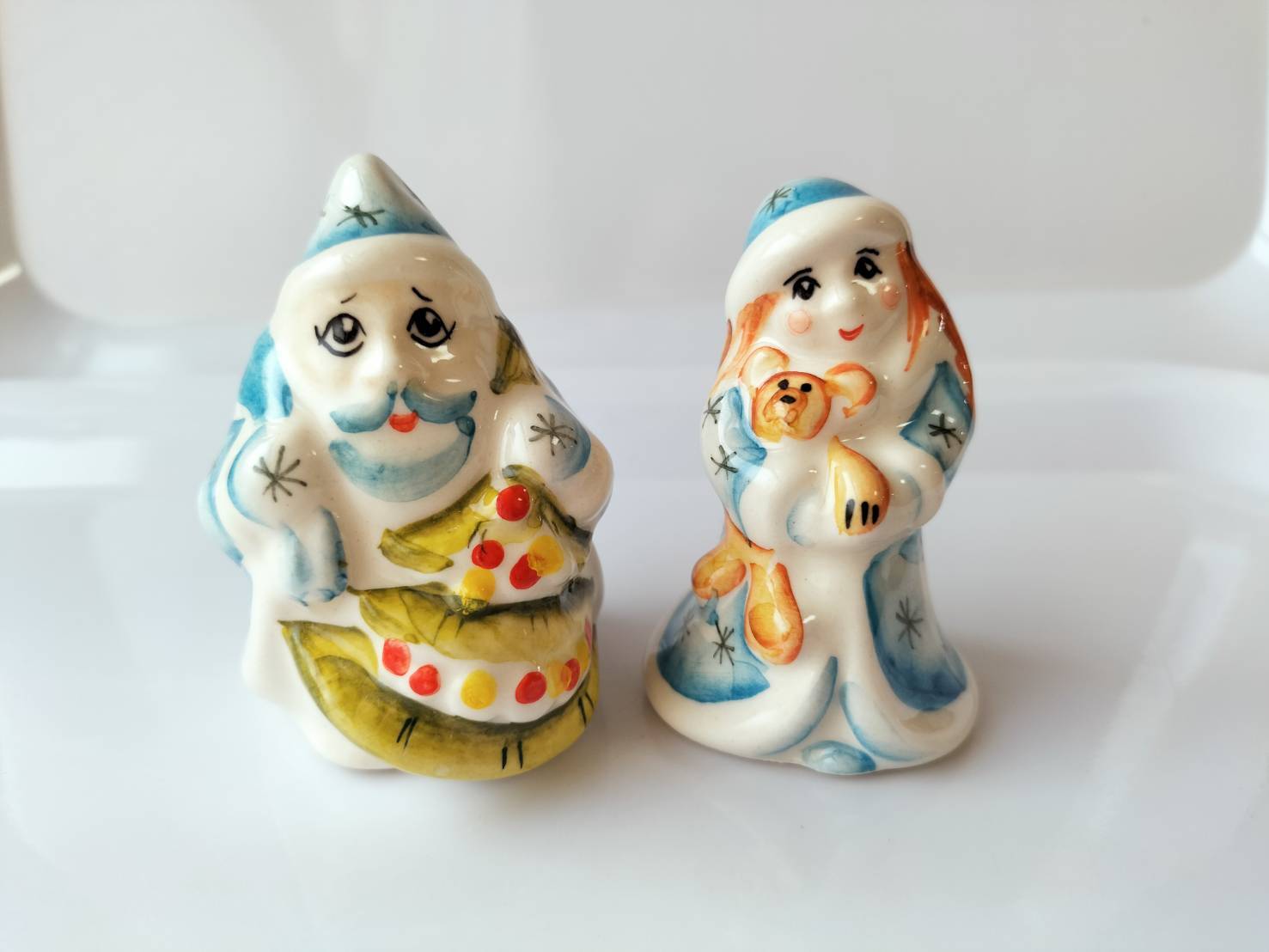 【GZ356】北欧ロシア雑貨 動物陶器 グジェリ焼 マロースおじさんと雪娘