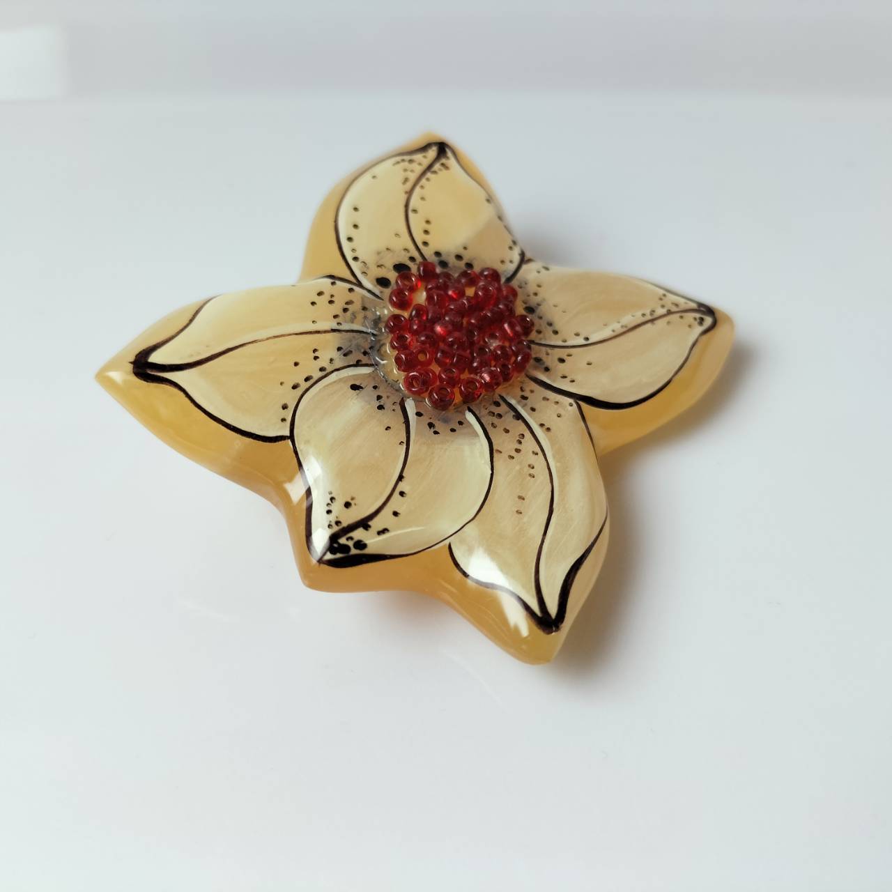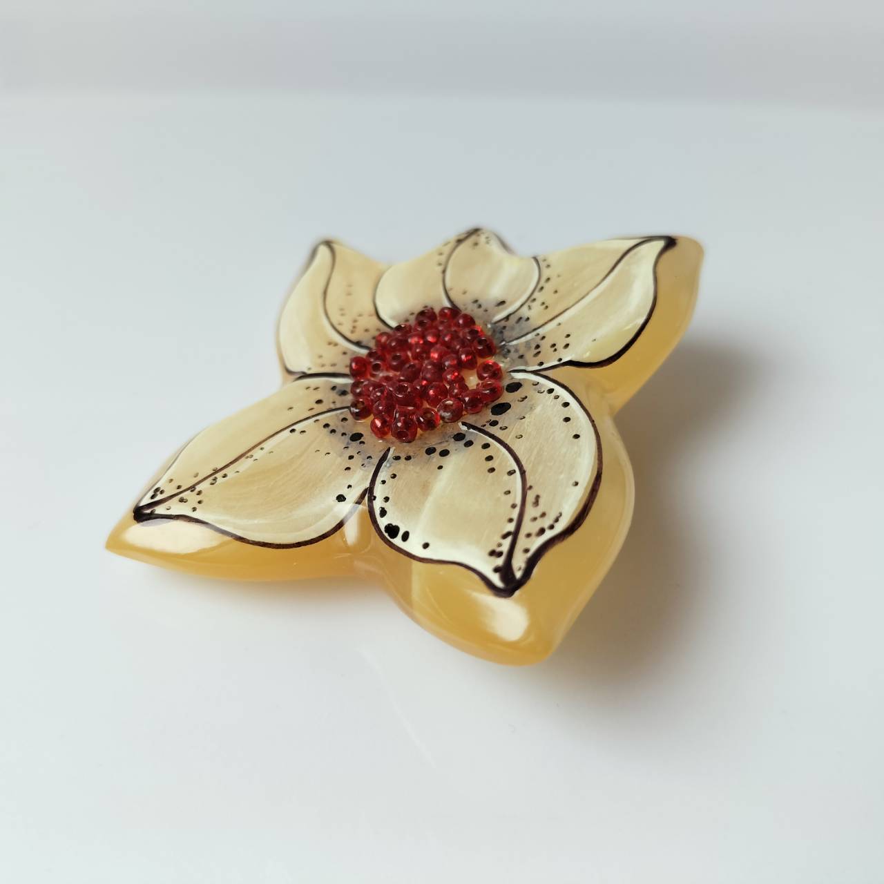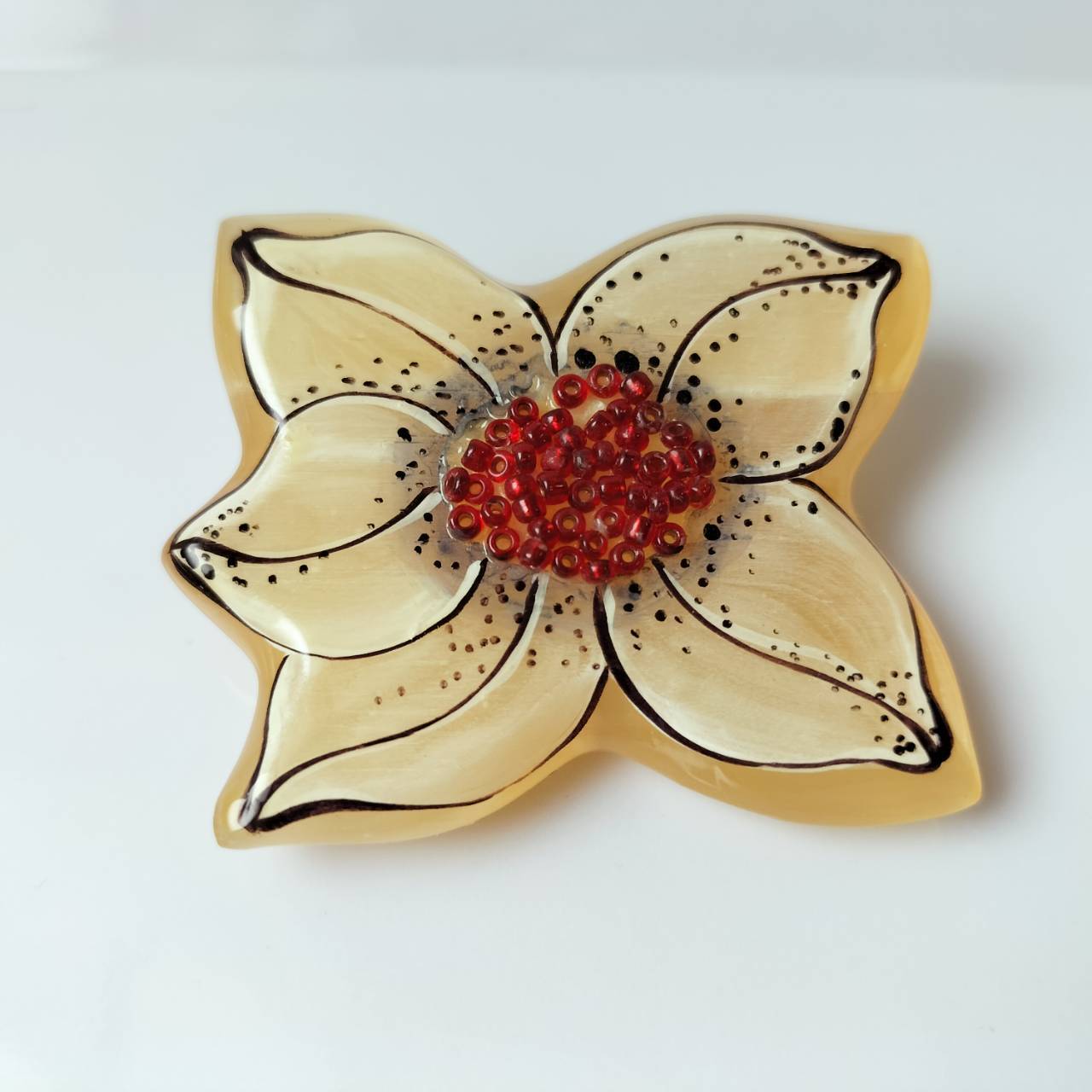 【CEL540】北欧ロシア雑貨天然石・セレナイト 水晶/ 文鎮・重石 お花のブローチ