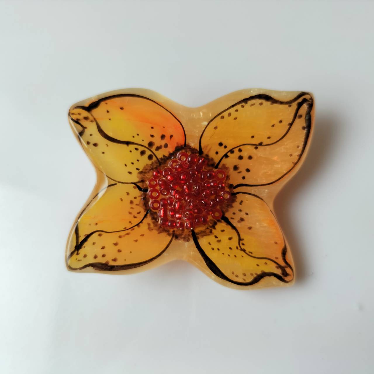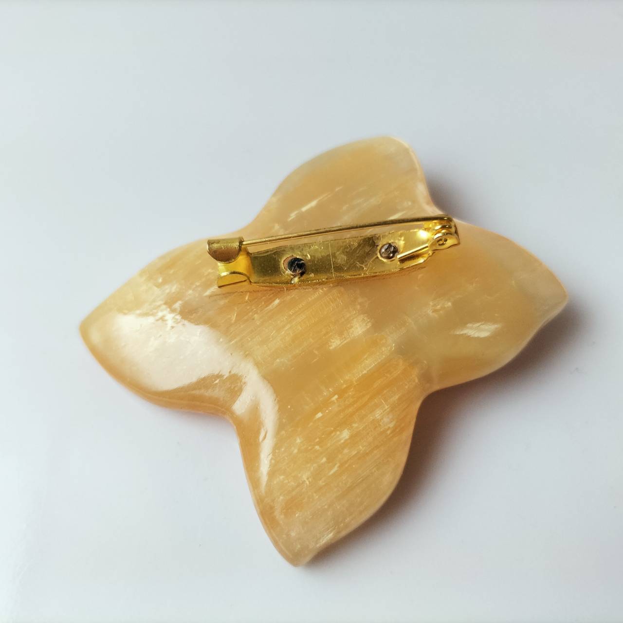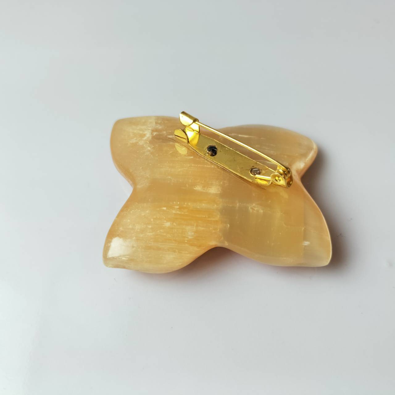 【CEL539】北欧ロシア雑貨天然石・セレナイト 水晶/ 文鎮・重石 お花のブローチ
