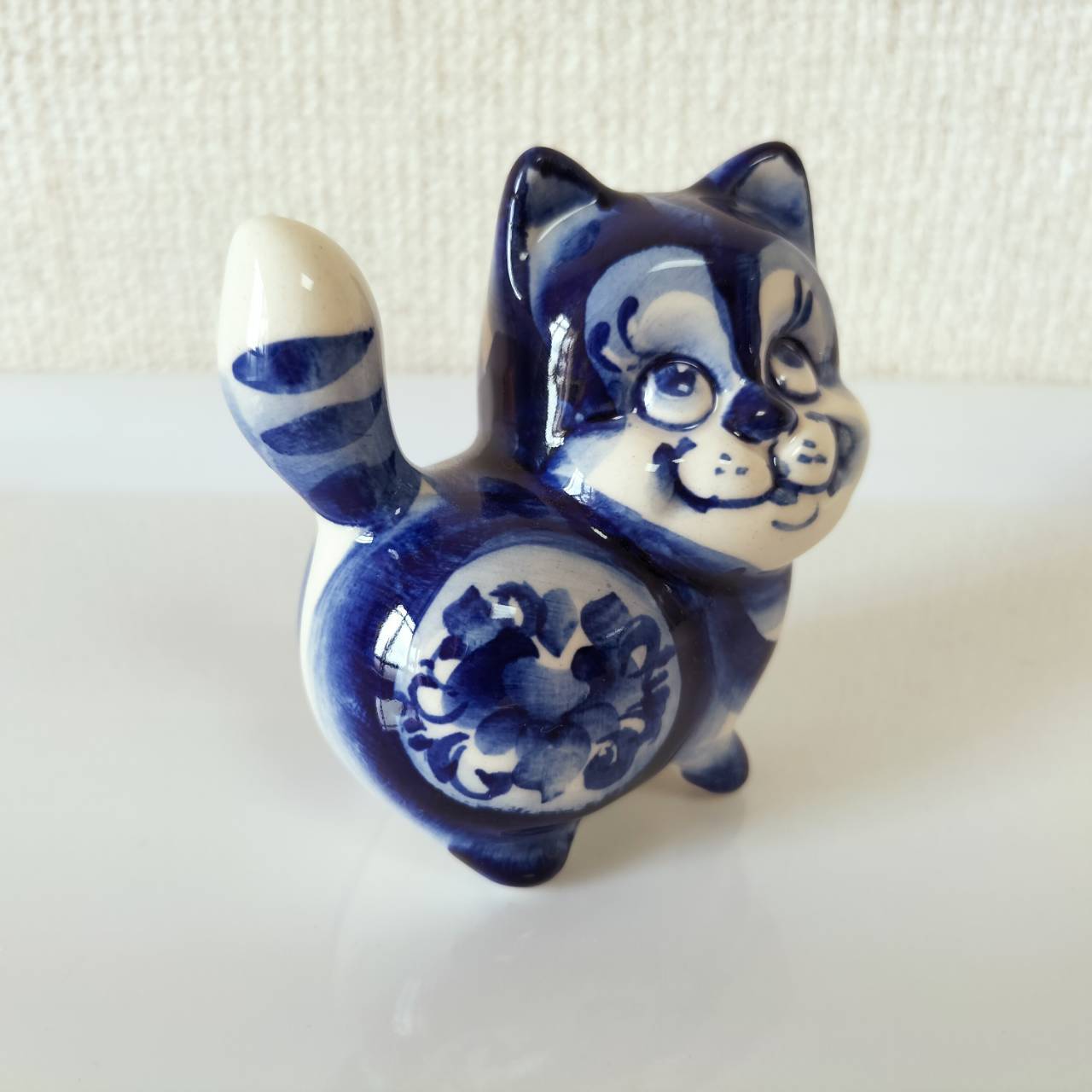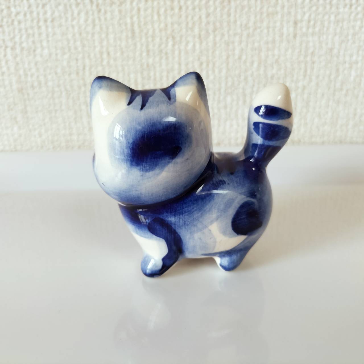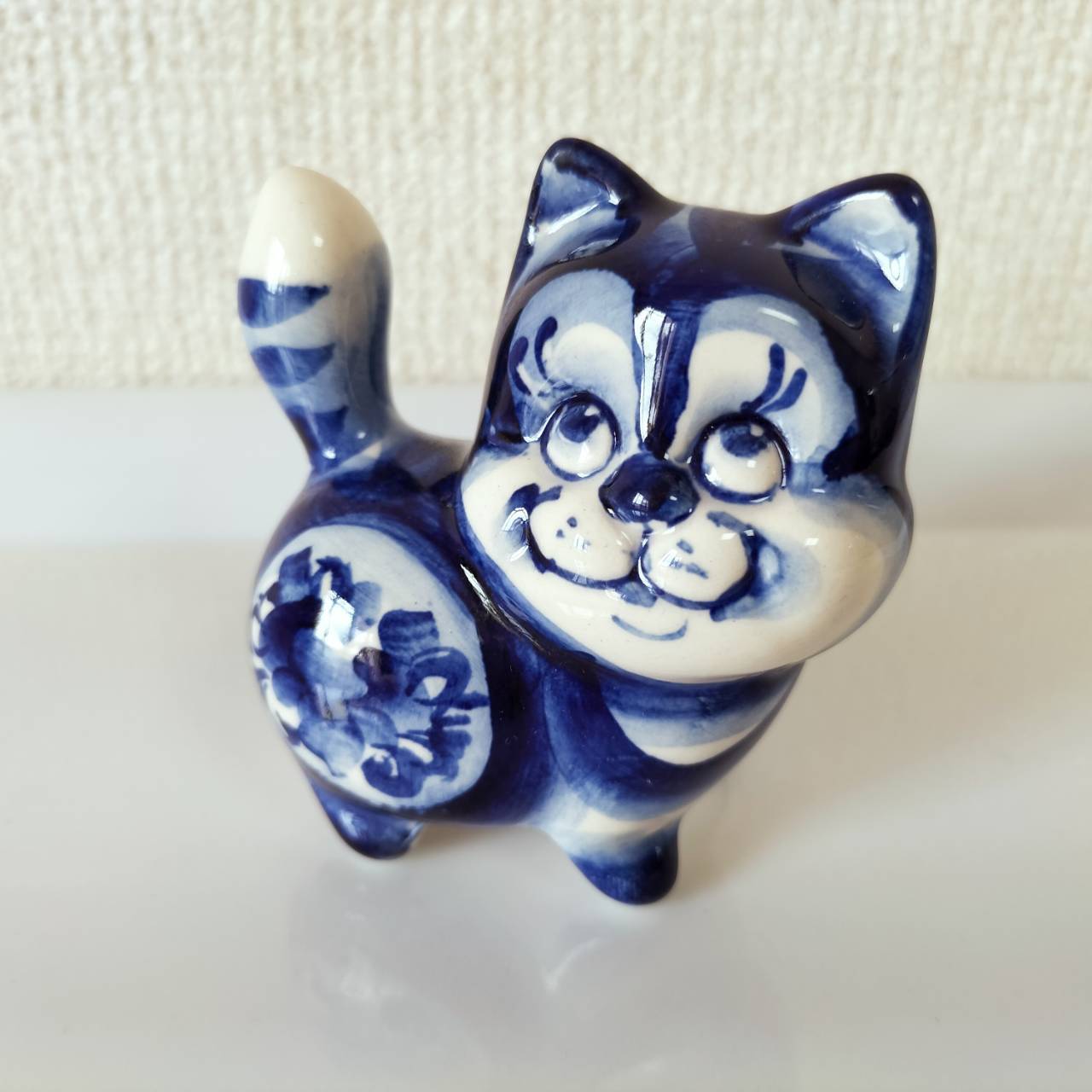 【GZ044】北欧ロシア雑貨 動物陶器 グジェリ焼 ねこ