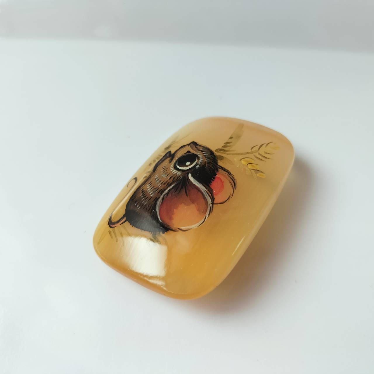 【CEL549】輸入雑貨天然石・セレナイト 水晶/ 文鎮・重石 ブローチ ねずみ