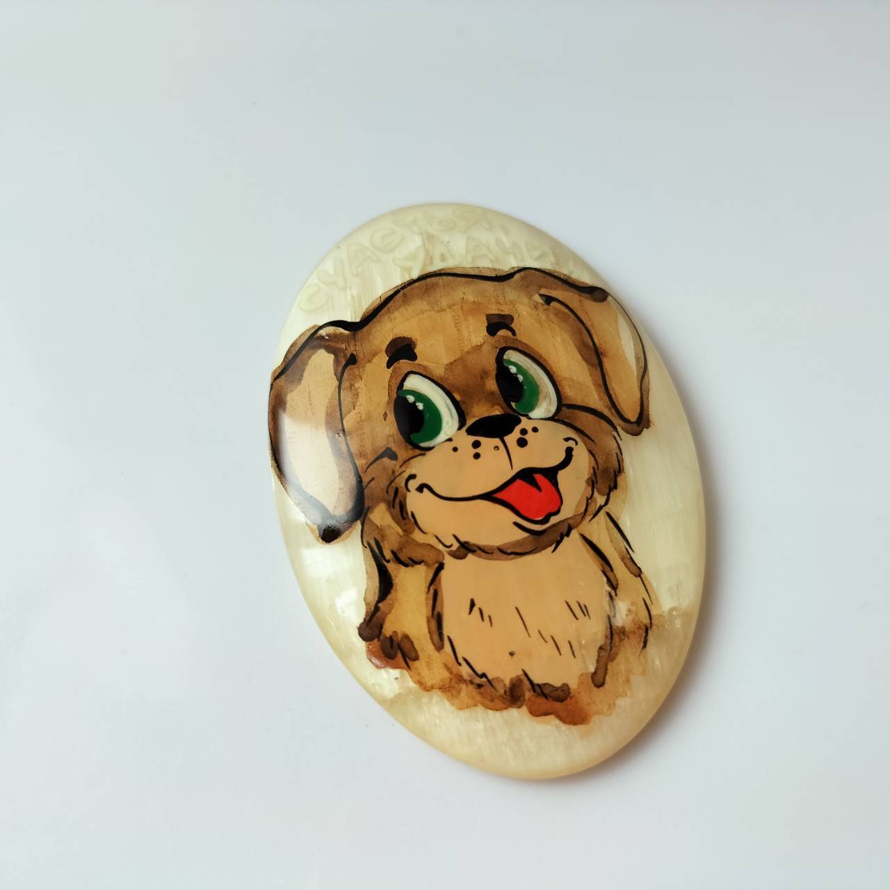 【CEL548】輸入雑貨天然石・セレナイト 水晶/ 文鎮・重石 マグネット いぬ