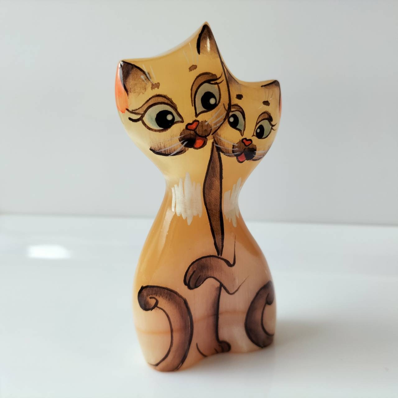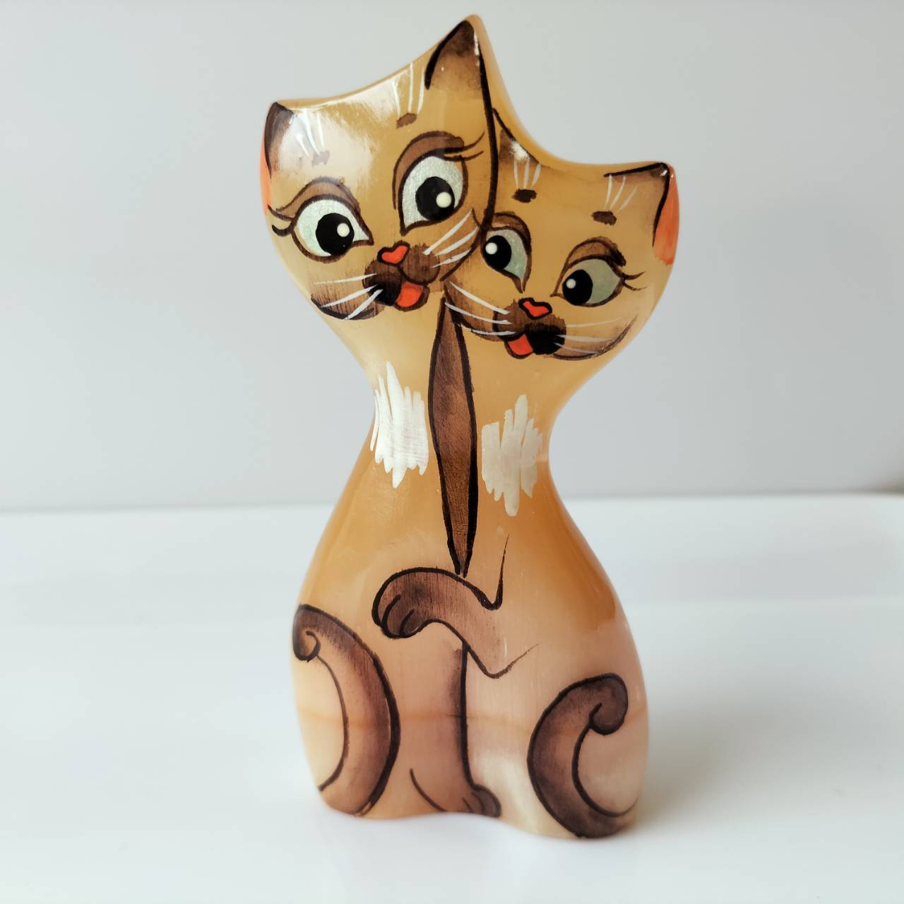 【CEL094】輸入雑貨天然石・セレナイト 水晶/ 文鎮 兄弟ねこ