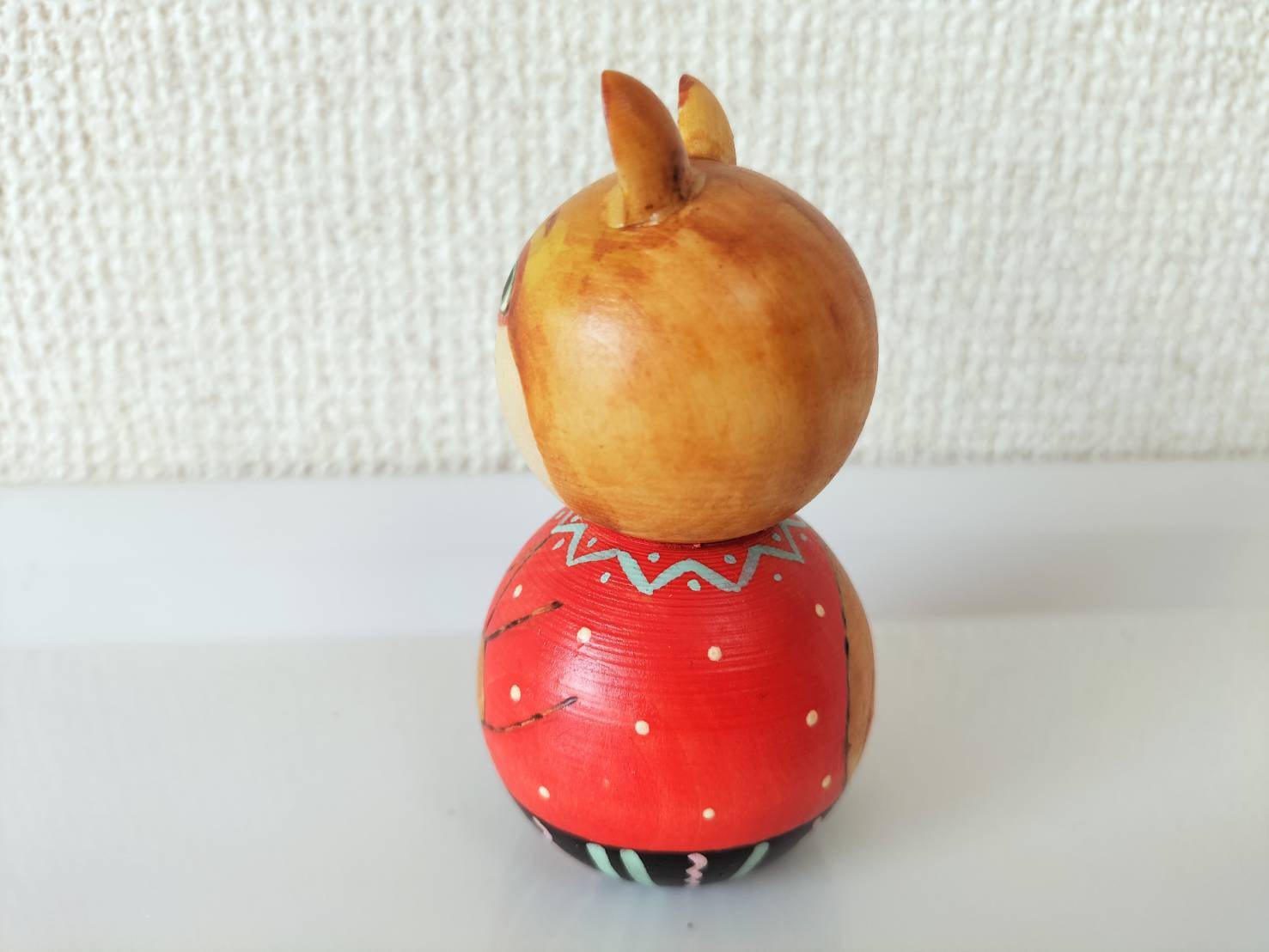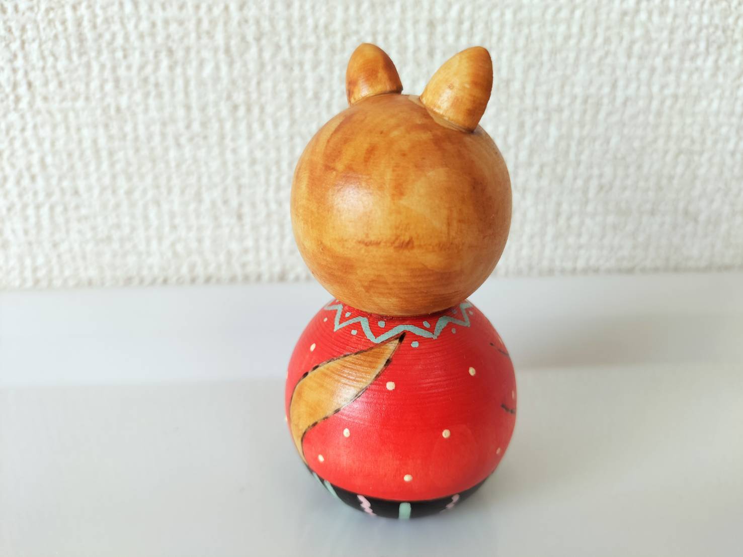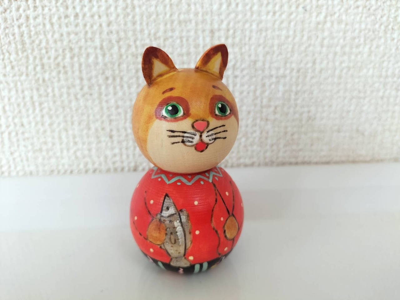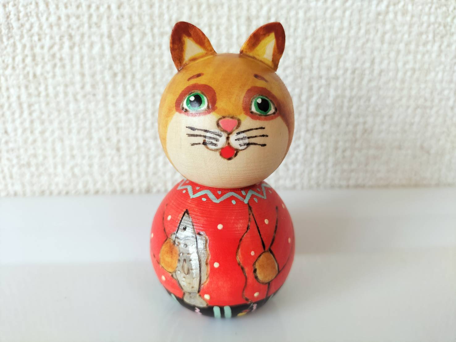 【LYH152】北欧ロシア雑貨 リューバ作 木製人形 ねこ(赤)