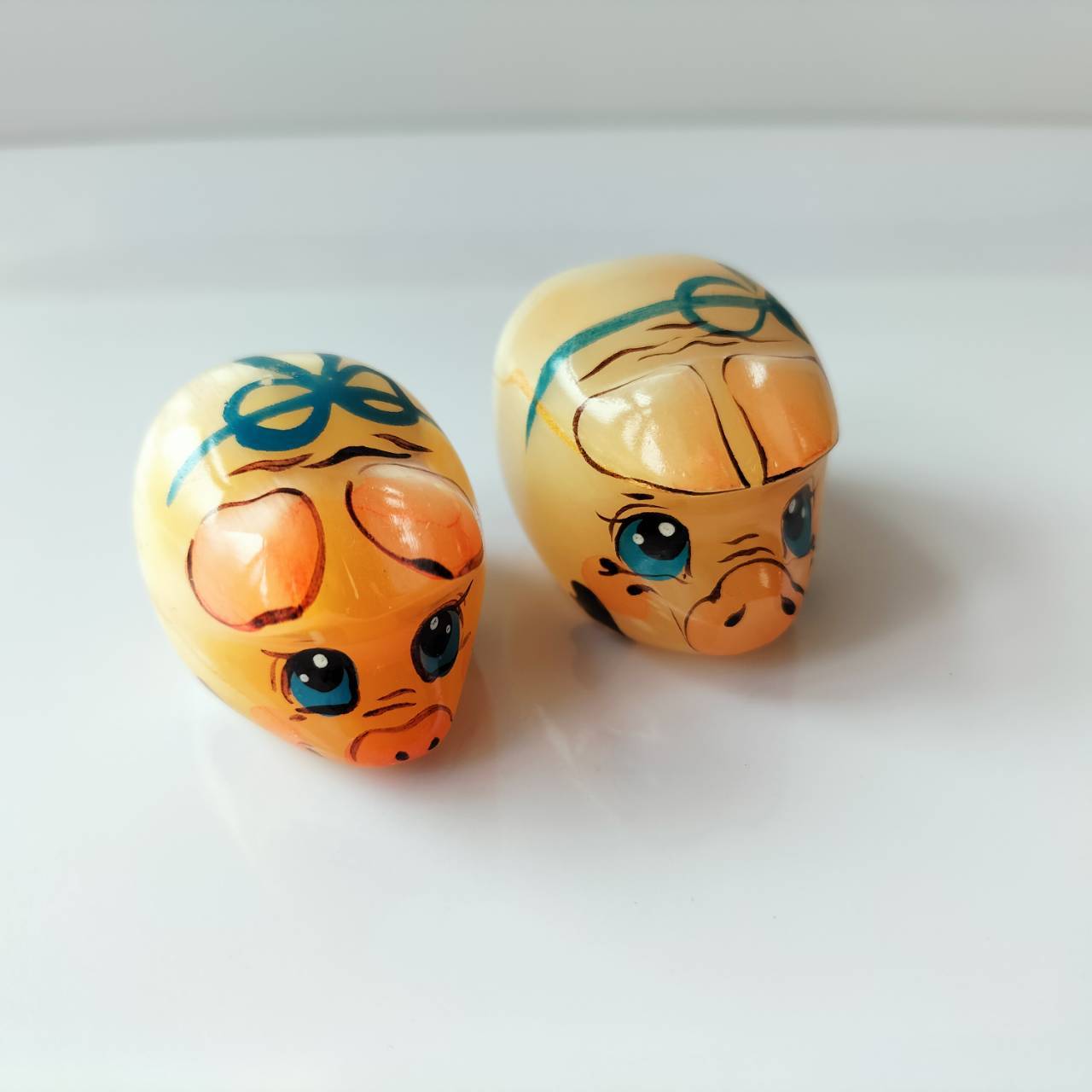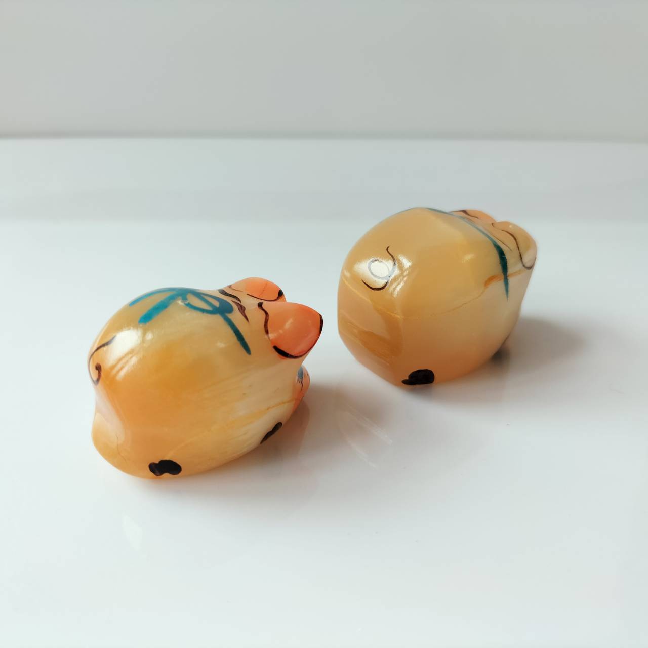 【CEL582】輸入雑貨天然石・セレナイト 水晶/ 文鎮 こぶたちゃん2個セット