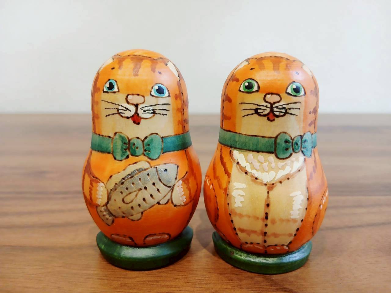 【LYH157】北欧ロシア雑貨 リューバ作のマグネット ねこ2個セット