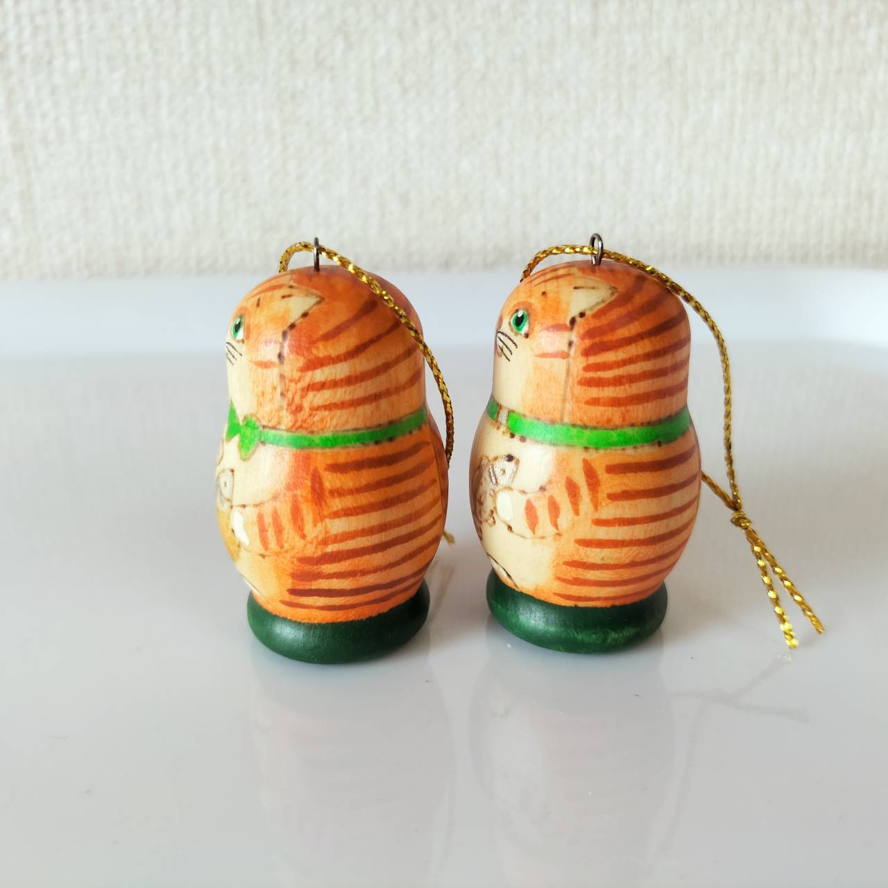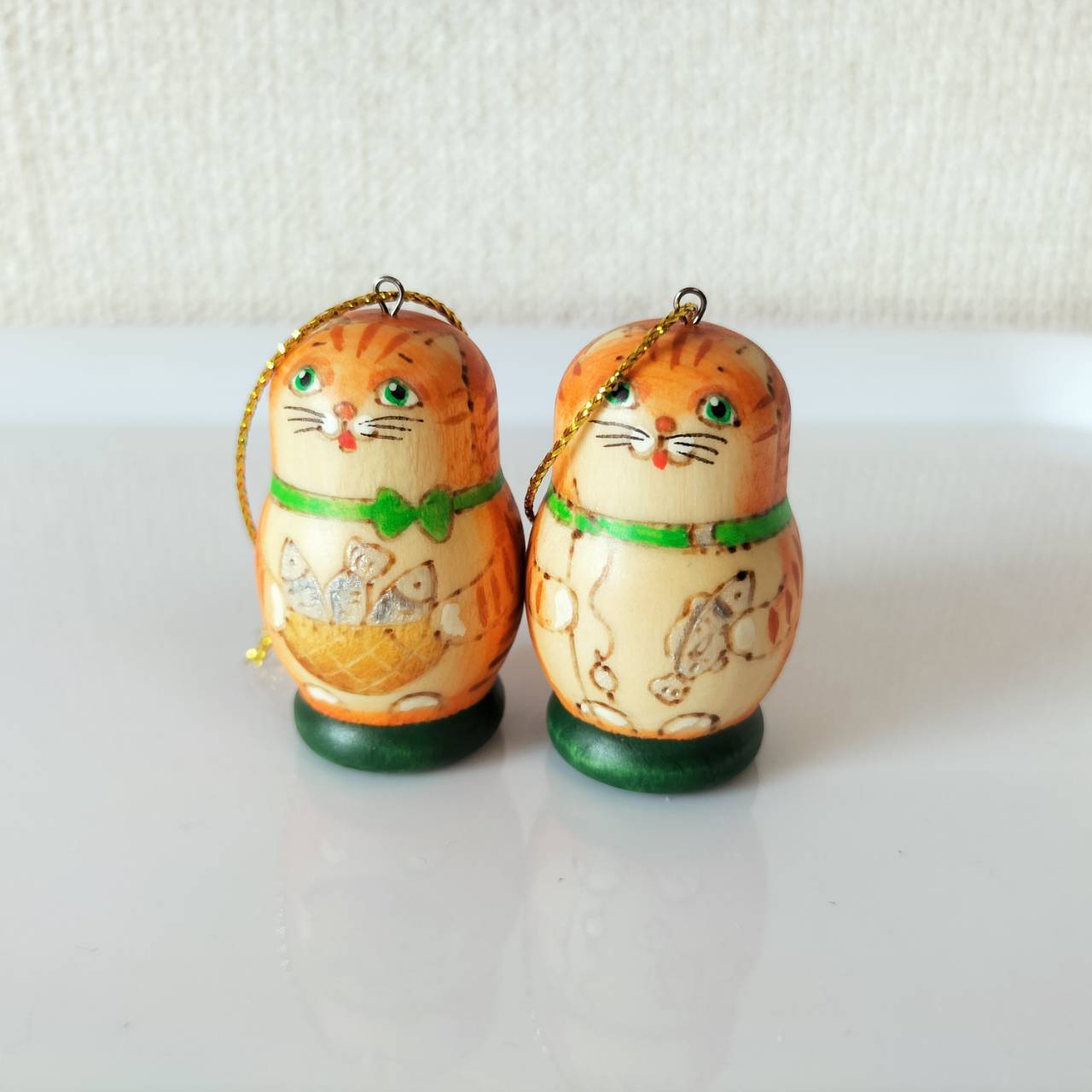 ロシアで有名なリュボーフィさんという作家の木製オーナメントです。2個セット、ばら売り不可です。