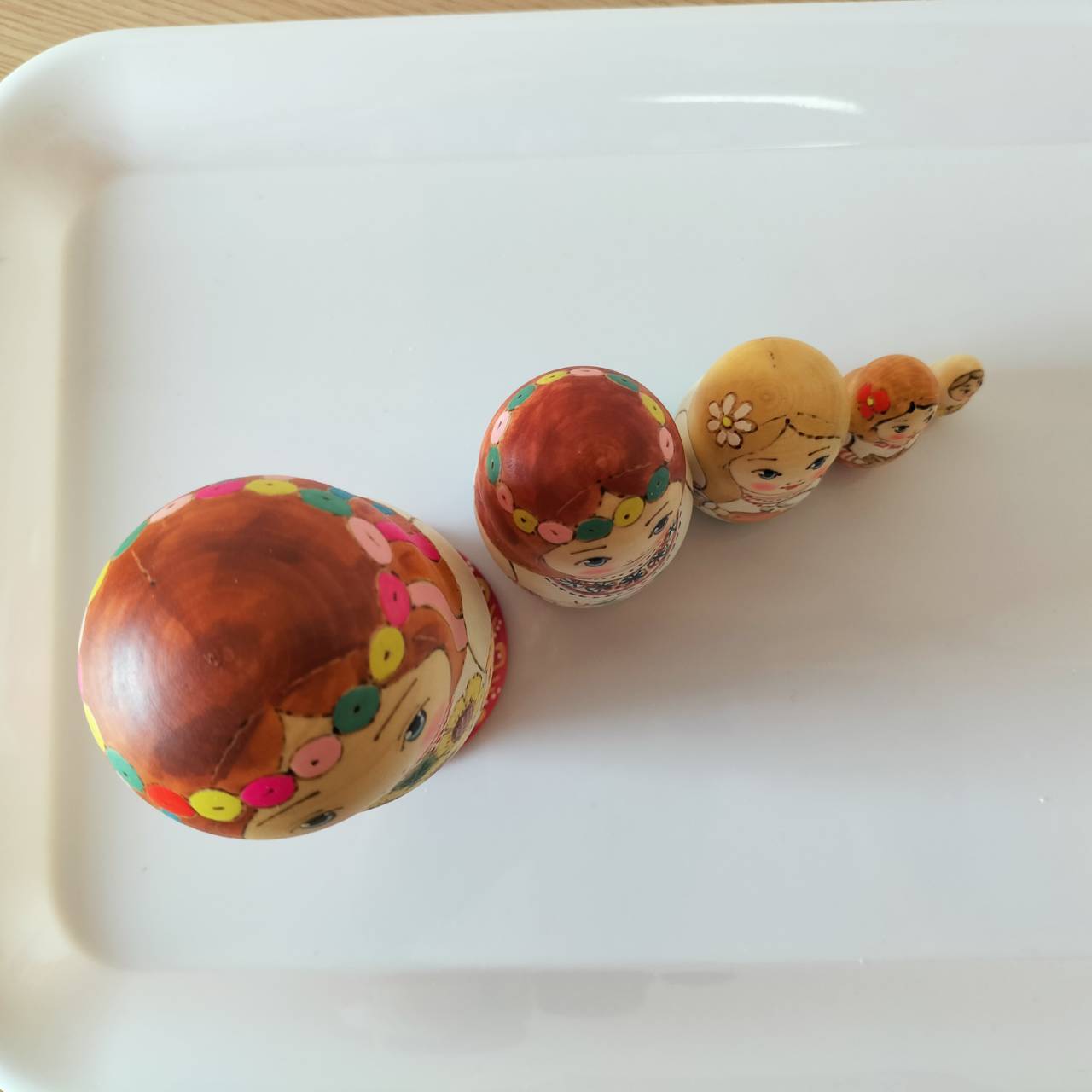 ロシアで有名なリュボーフィさんという作家のマトリョーシカです。