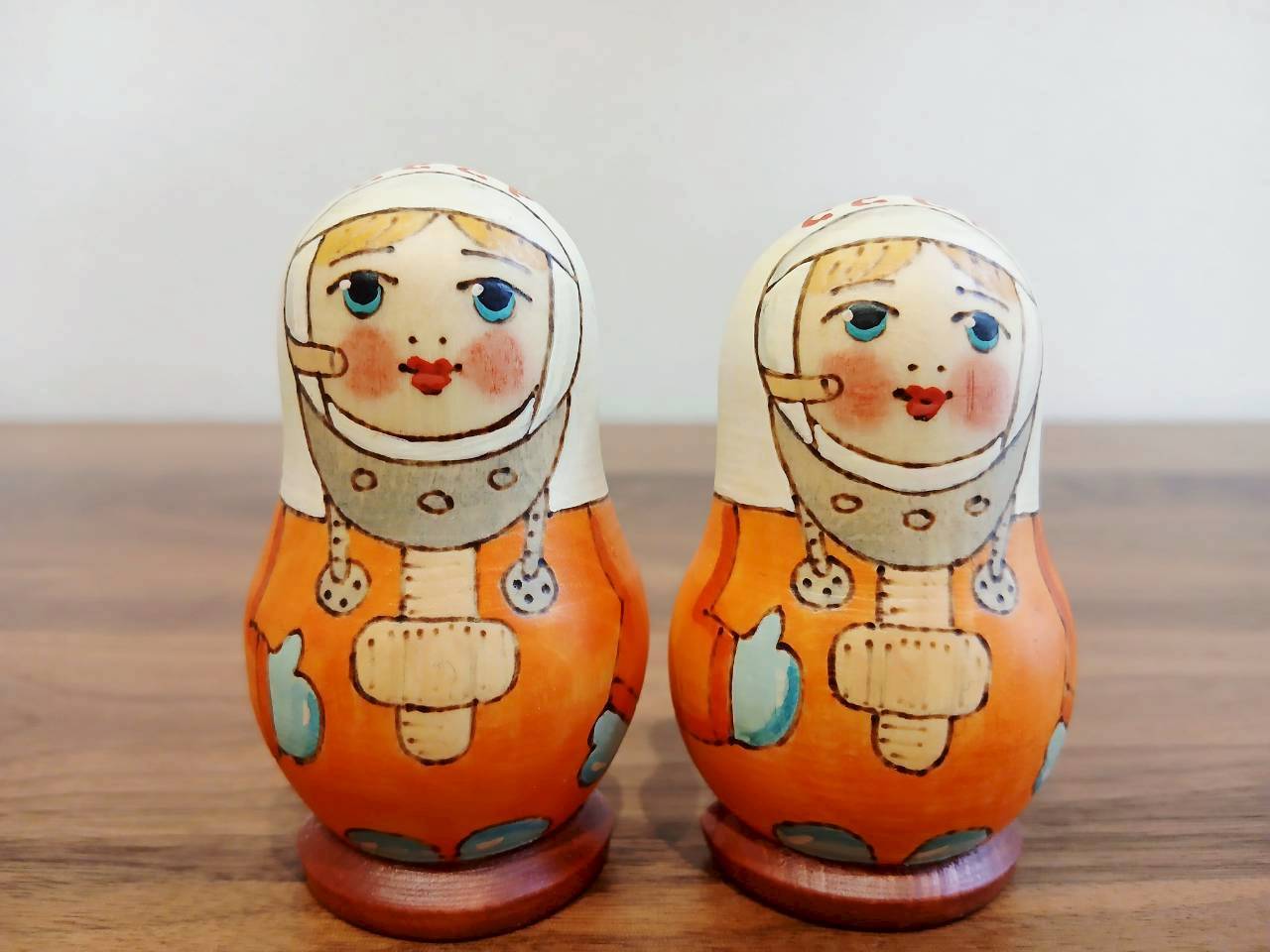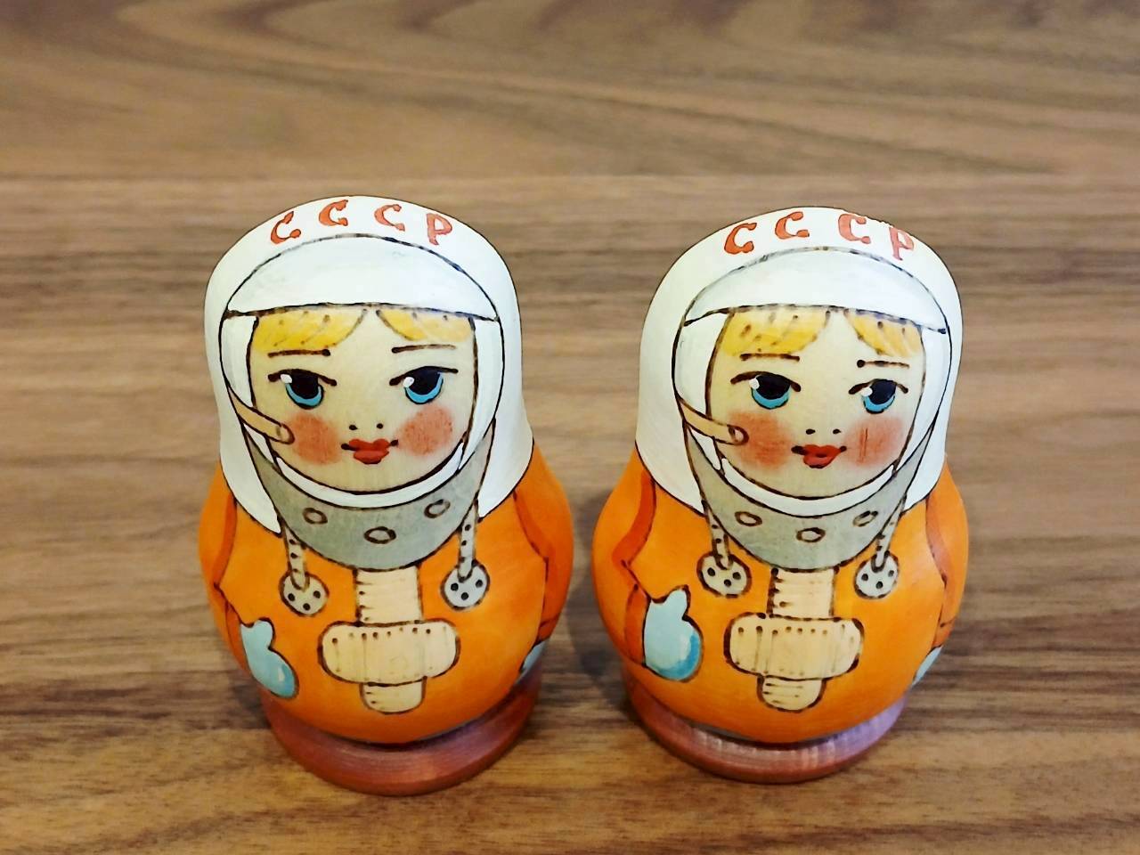 【LYH164】北欧ロシア雑貨 リューバ作のマグネット 宇宙開発2個セット