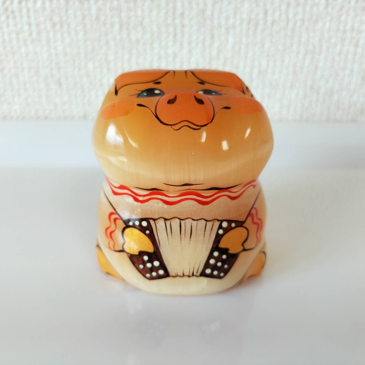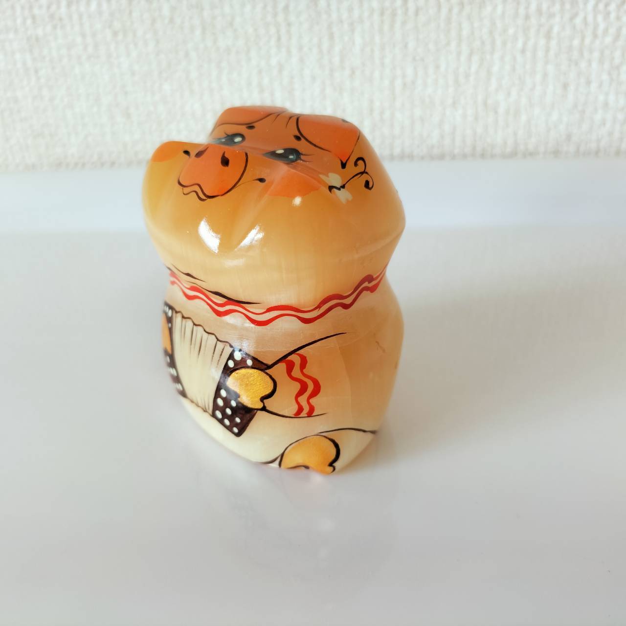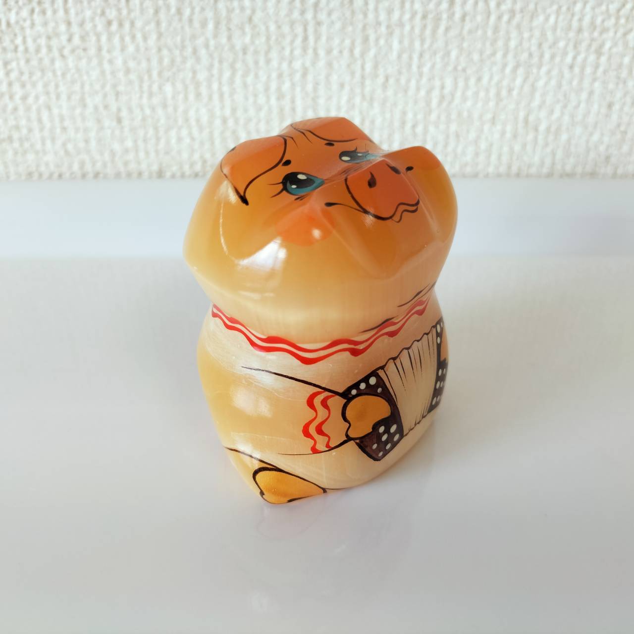 【CEL591】輸入雑貨天然石・セレナイト 水晶/ 文鎮 アコーディオンのぶた