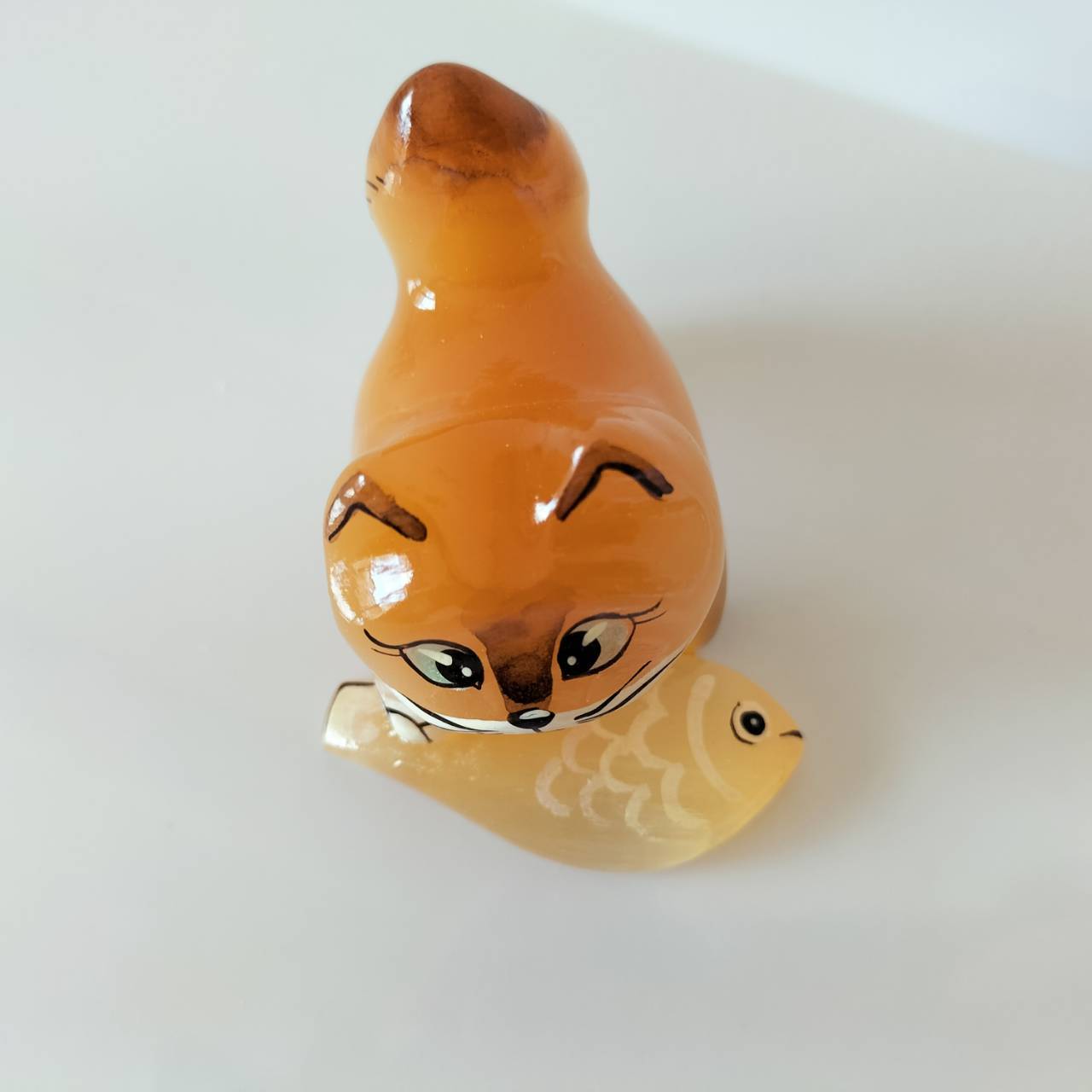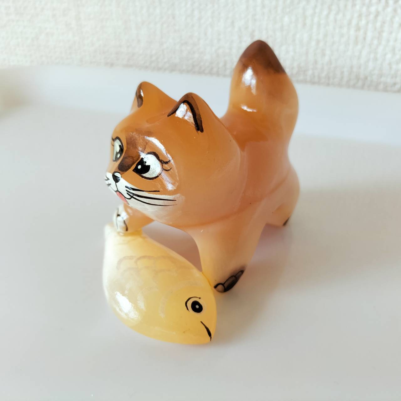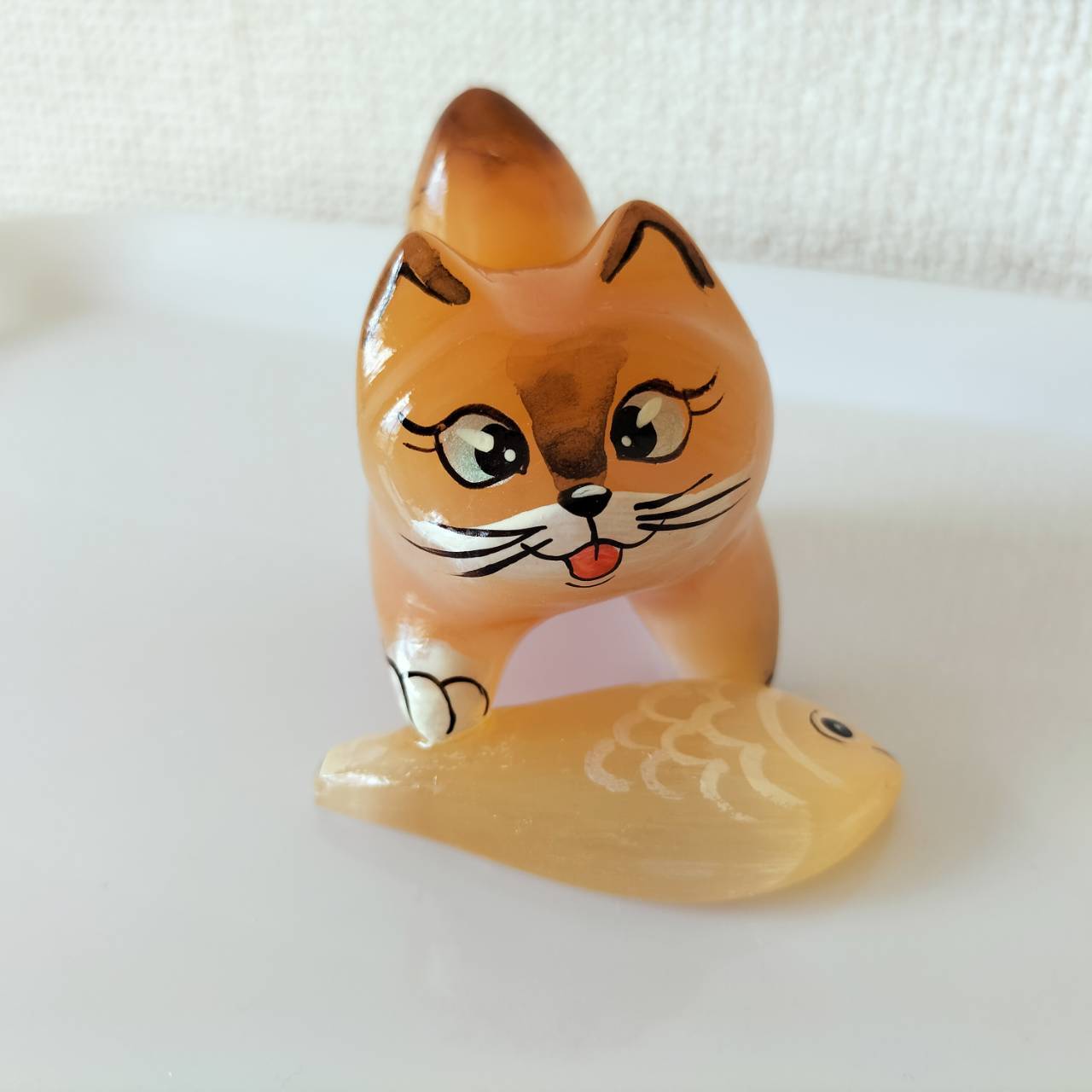 【CEL391】輸入雑貨天然石・セレナイト 水晶/ 文鎮 魚を得たねこ