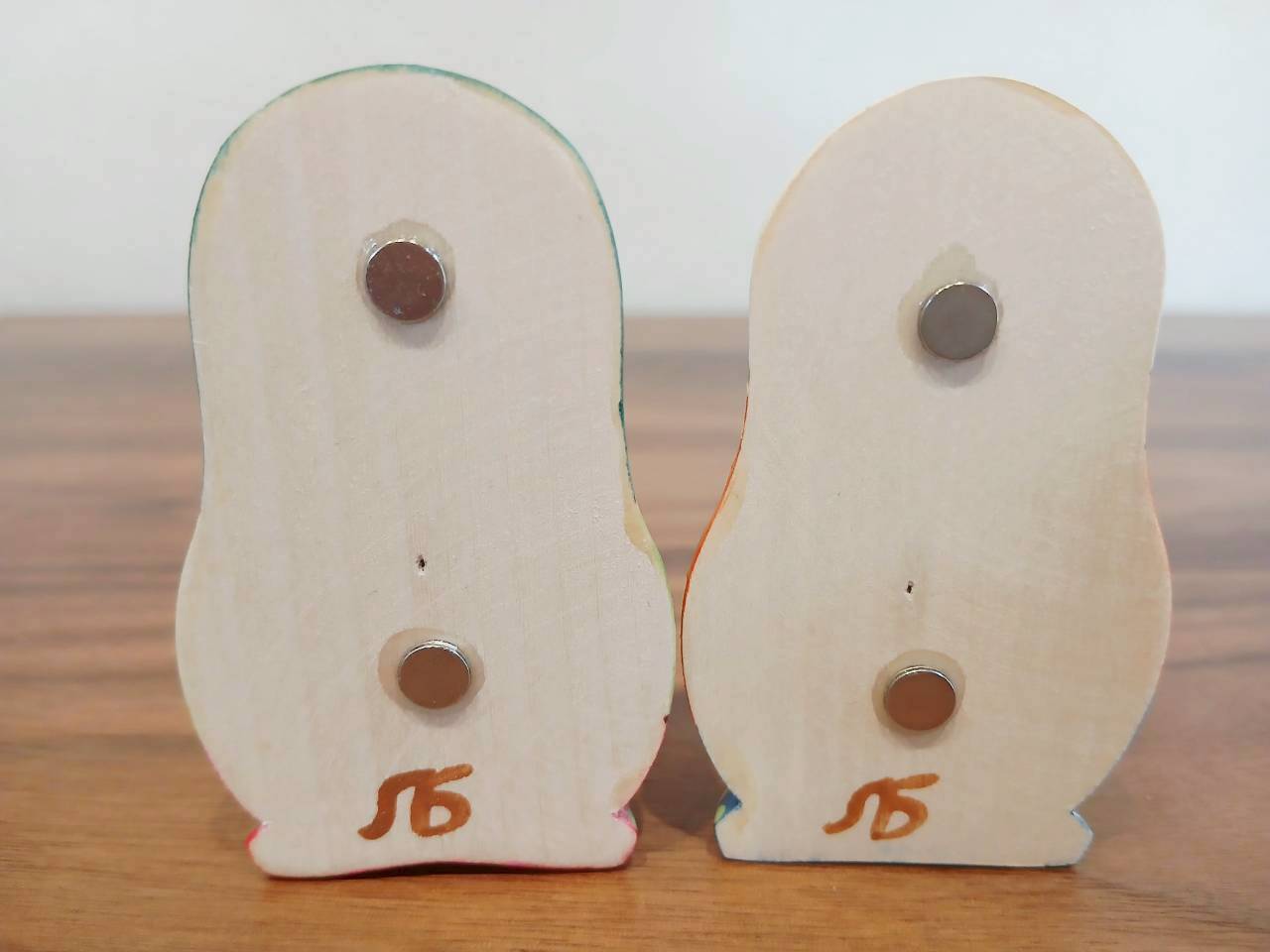 2個セット、バラ売り不可です。裏面の磁石は日本製とは異なり磁力は若干弱いですが、冷蔵庫などにくっつきます。