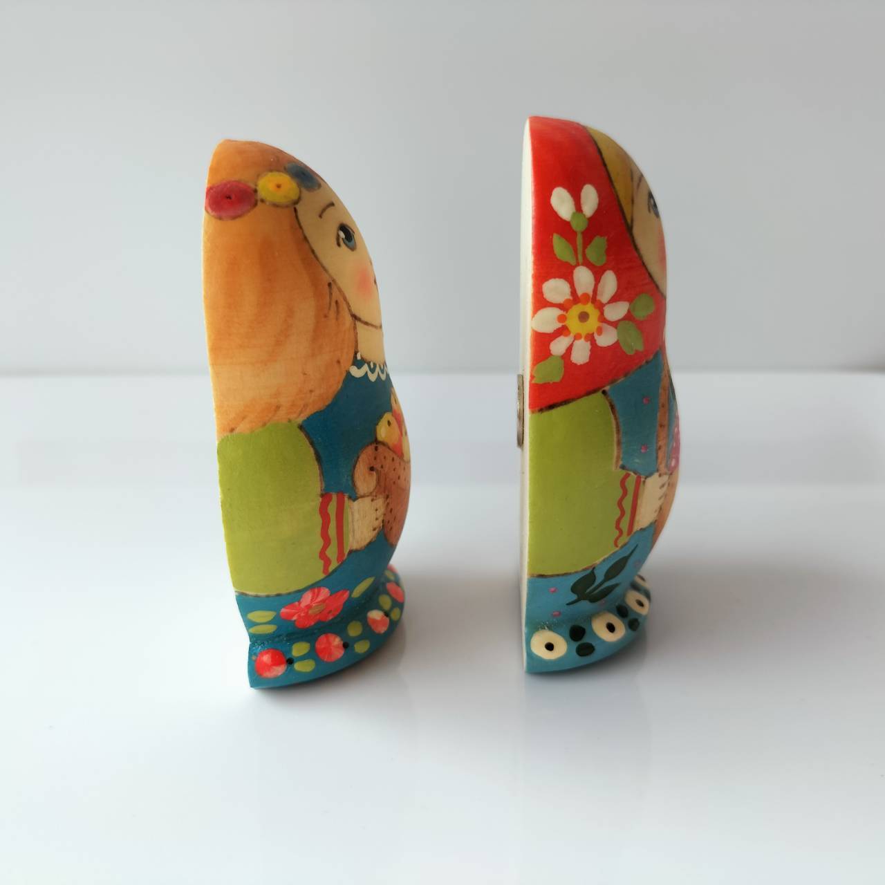ロシアで有名なナジェージダ・リュボーフィ親子という親子作家から直接譲り受けたマトリョーシカのマグネットです。