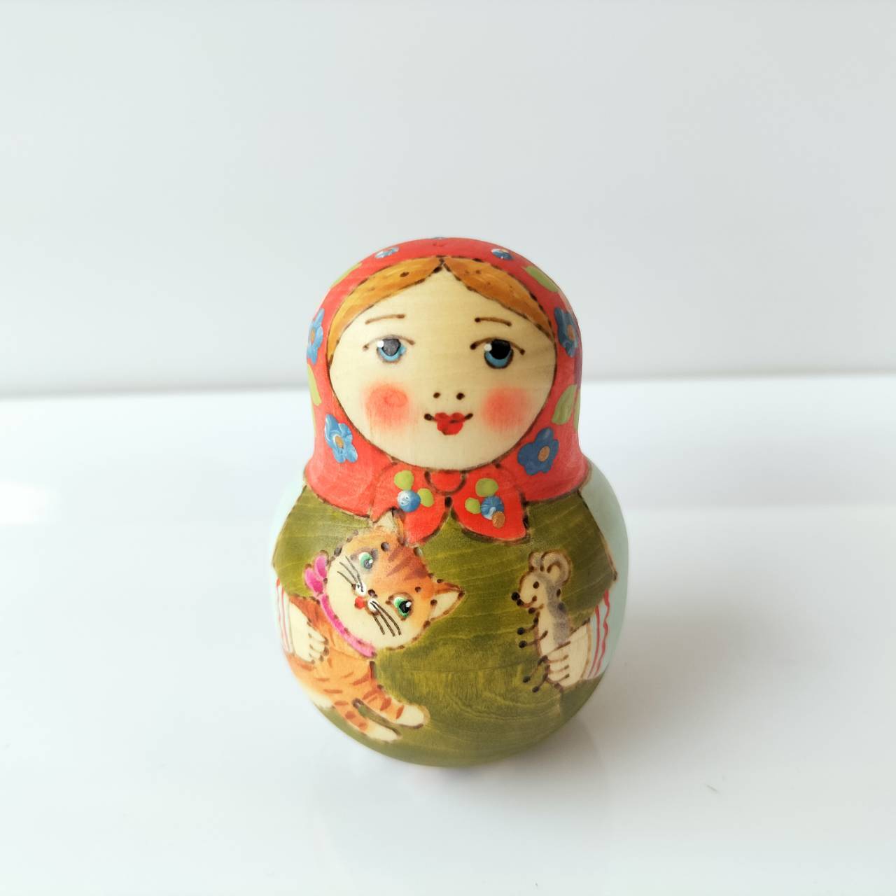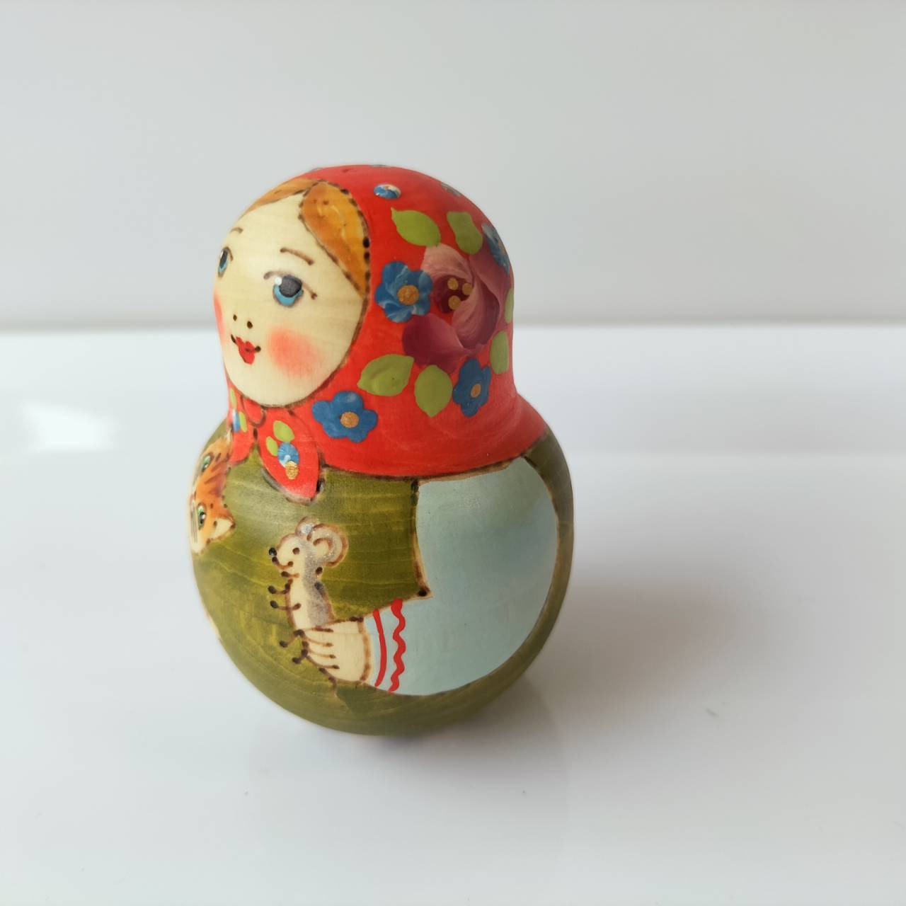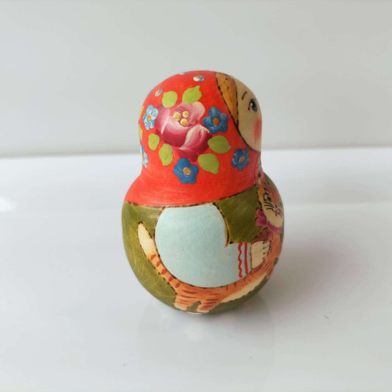 【LYH176】北欧ロシア雑貨 リューバ作の起き上がりこぼし(中) ねこ