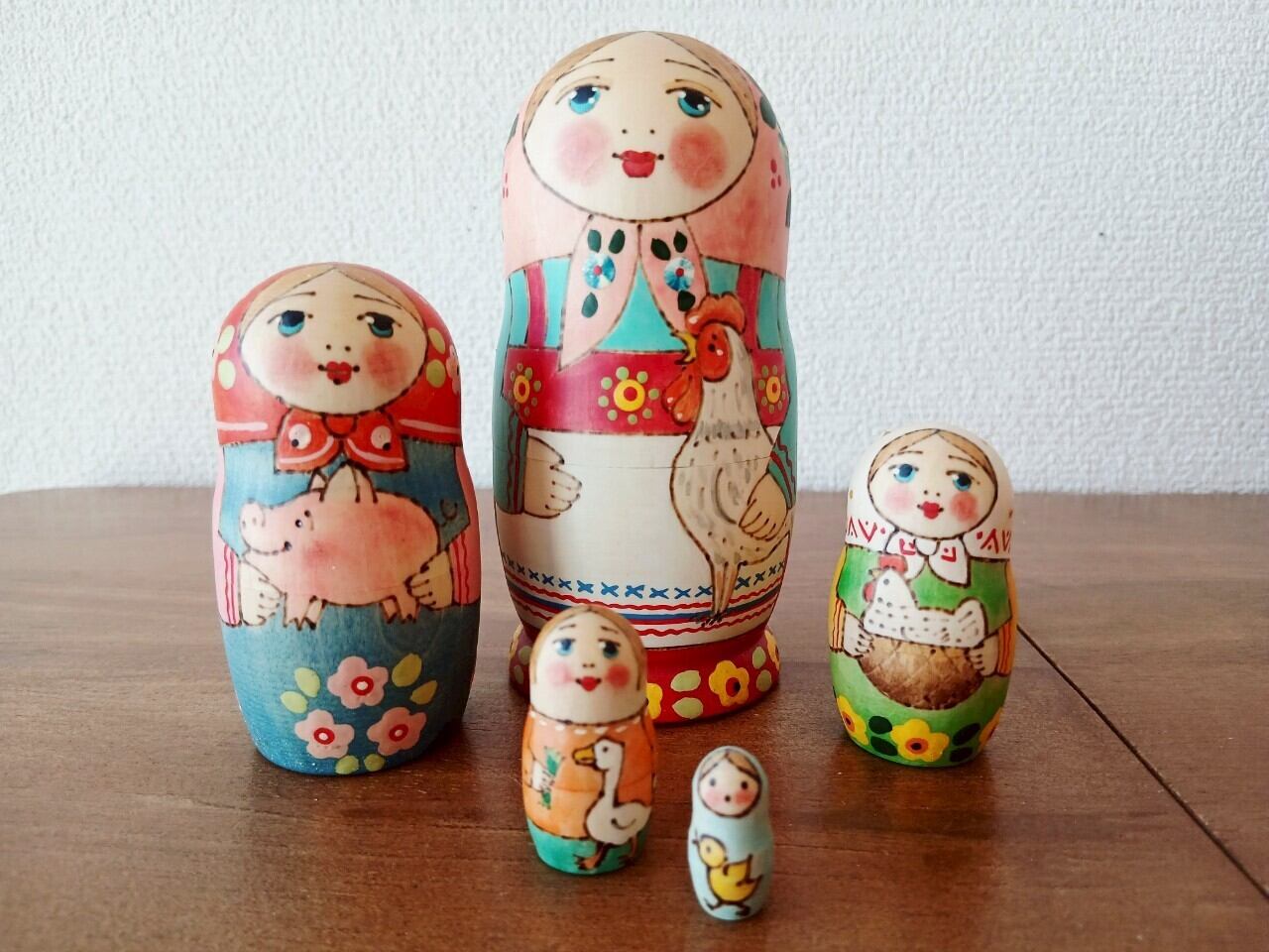 【LYH177】北欧ロシア雑貨 リューバ作のマトリョーシカ 農村の家畜