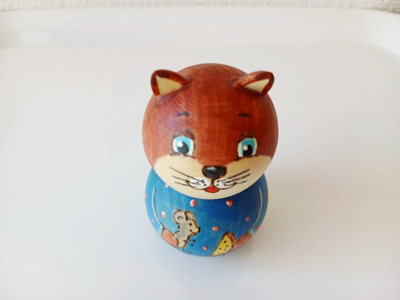 【LYH184】北欧ロシア雑貨 リューバ作 木製人形 ねことねずみ
