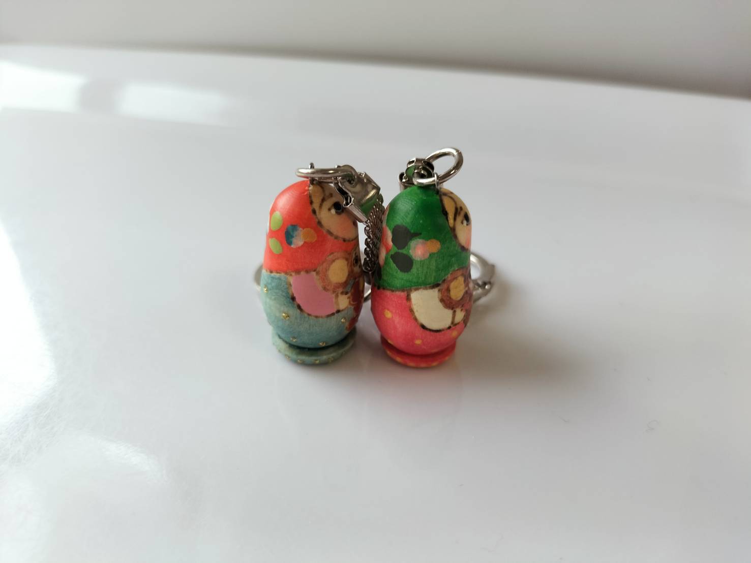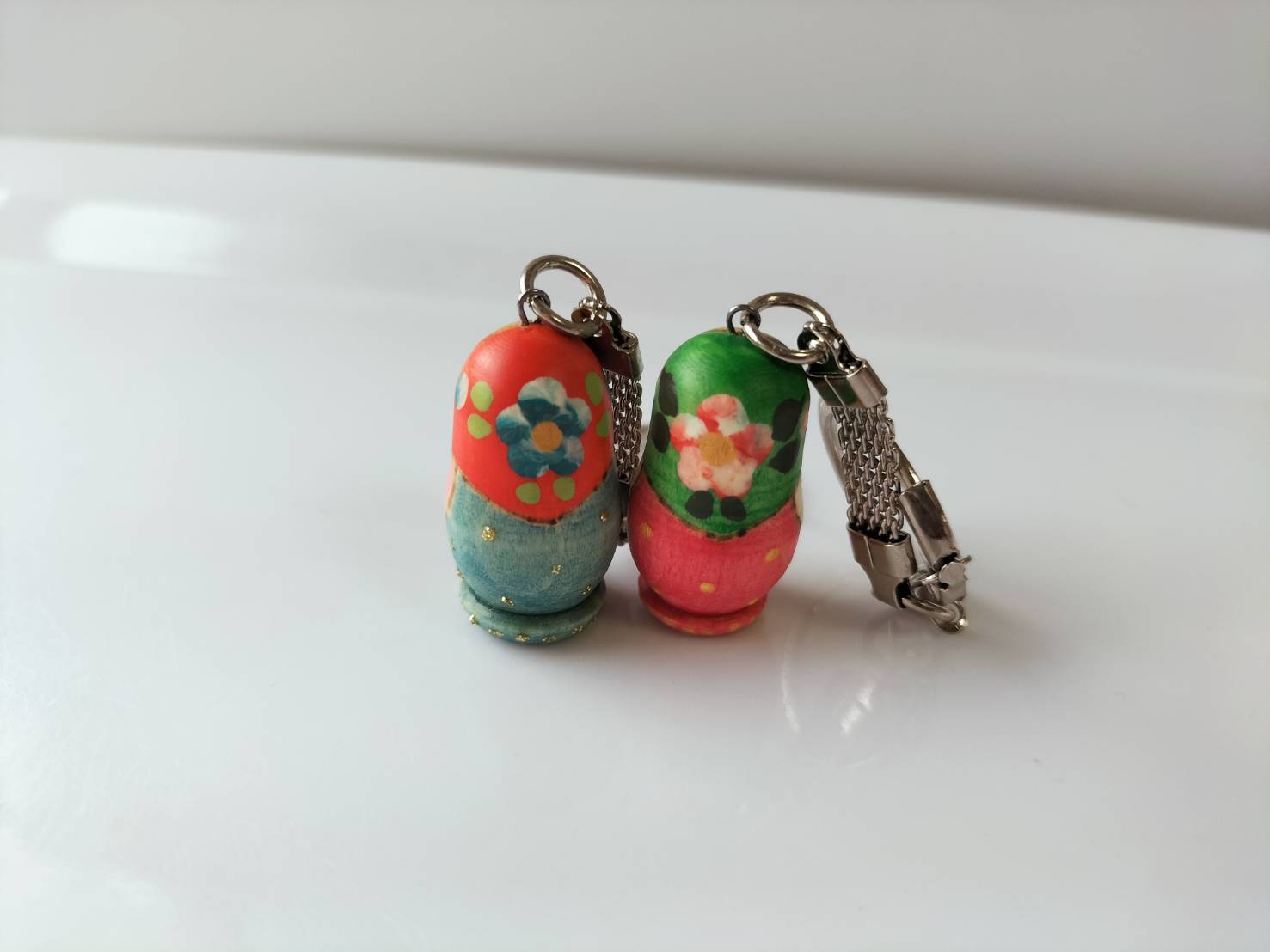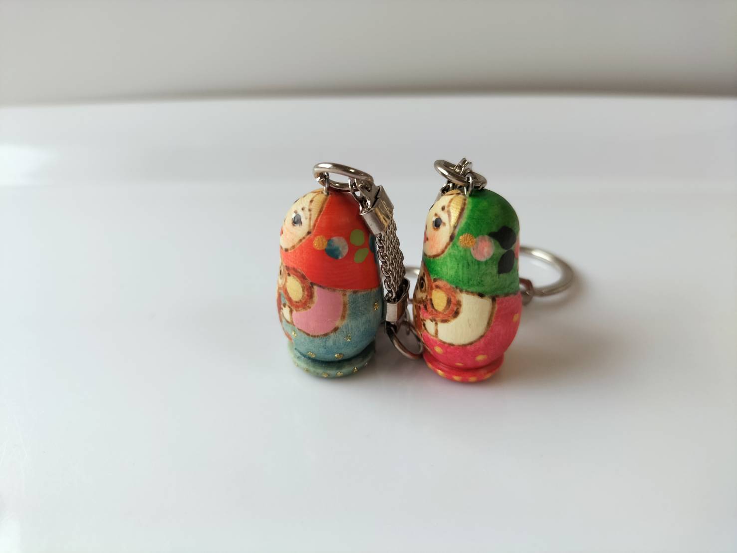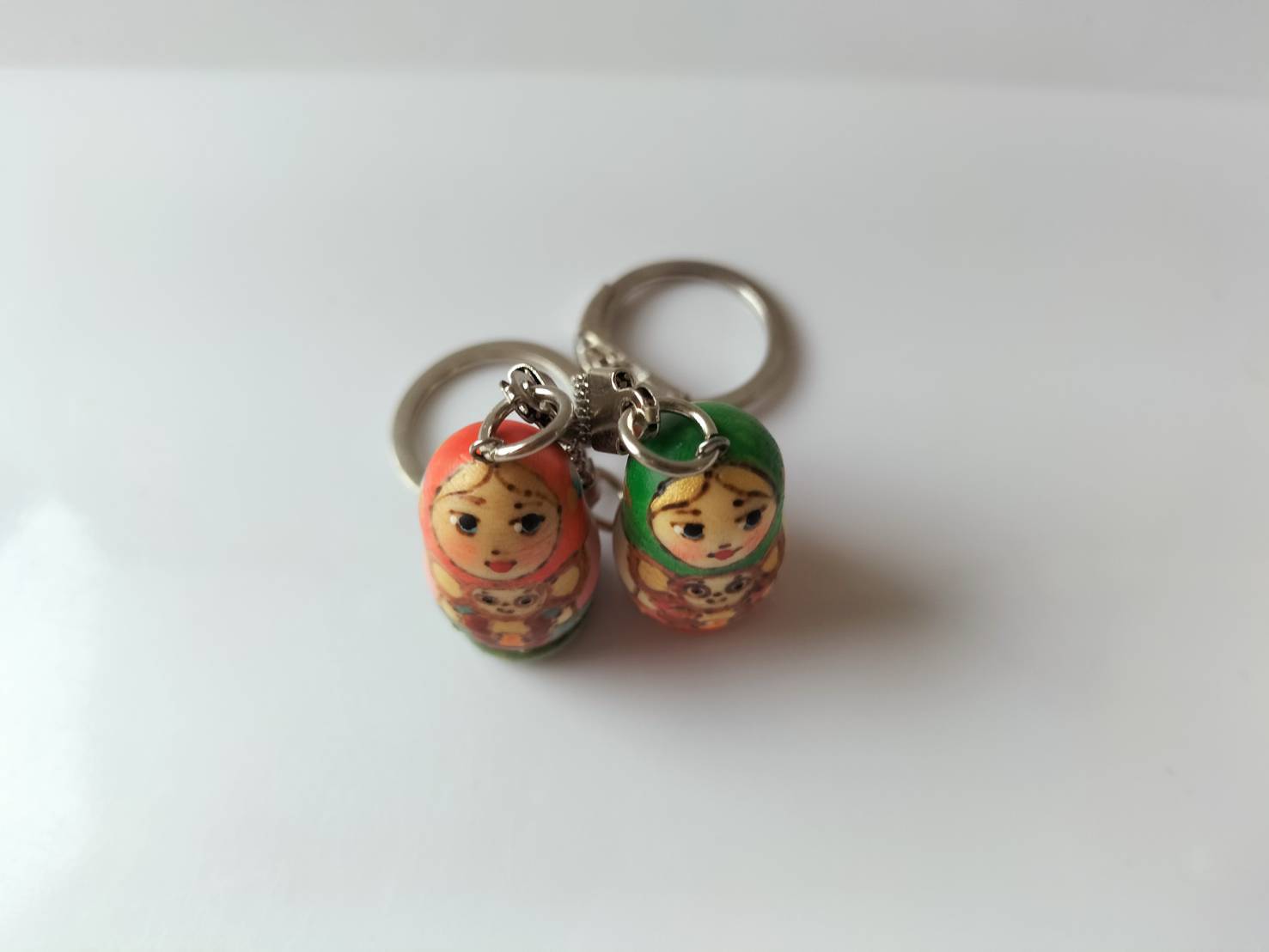 ロシアで有名なリュボーフィさんという作家のマトリョーシカのキーホルダーです。2個セット、バラ売り不可です。