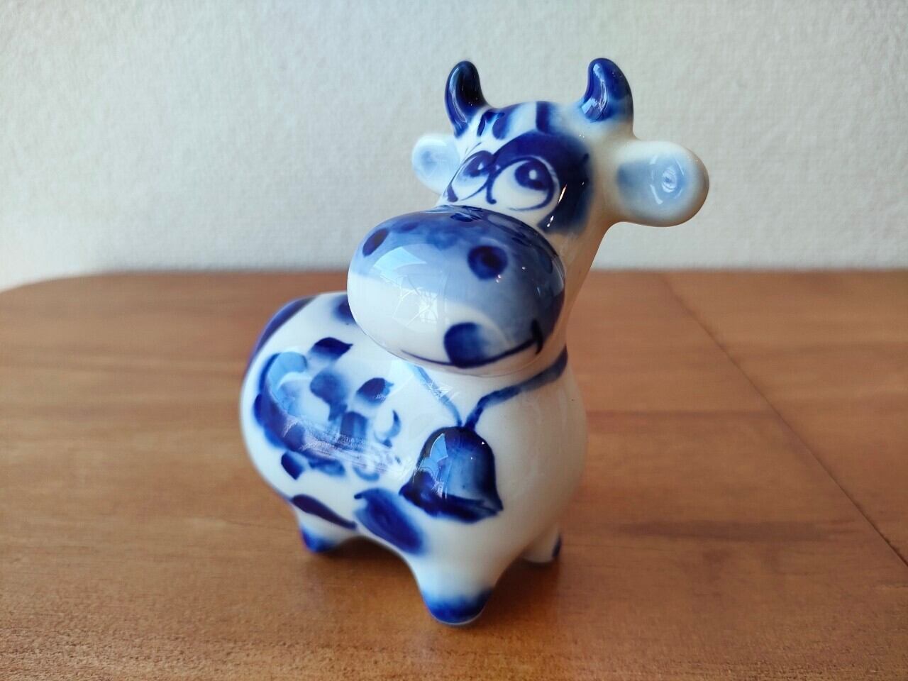 【GZ177】北欧ロシア雑貨 動物陶器 グジェリ焼 うし