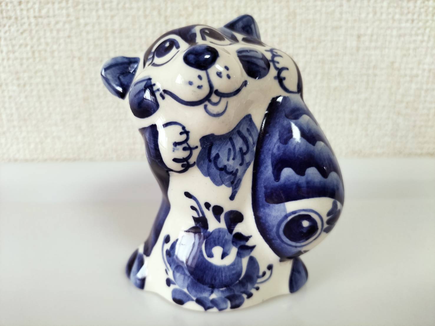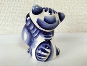 【GZ123】北欧ロシア雑貨 動物陶器 グジェリ焼 魚を得たねこ