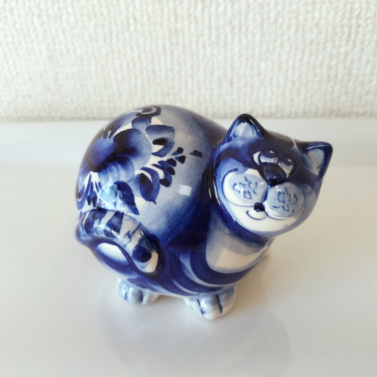 【GZ355】北欧ロシア雑貨 動物陶器 グジェリ焼 ねこ丸