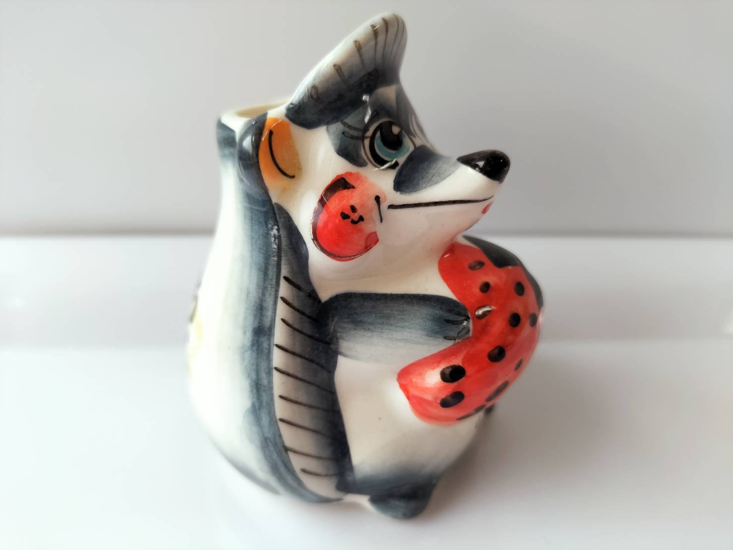 【GZ361】北欧ロシア雑貨 動物陶器 グジェリ焼 はりねずみの歯ブラシ立て