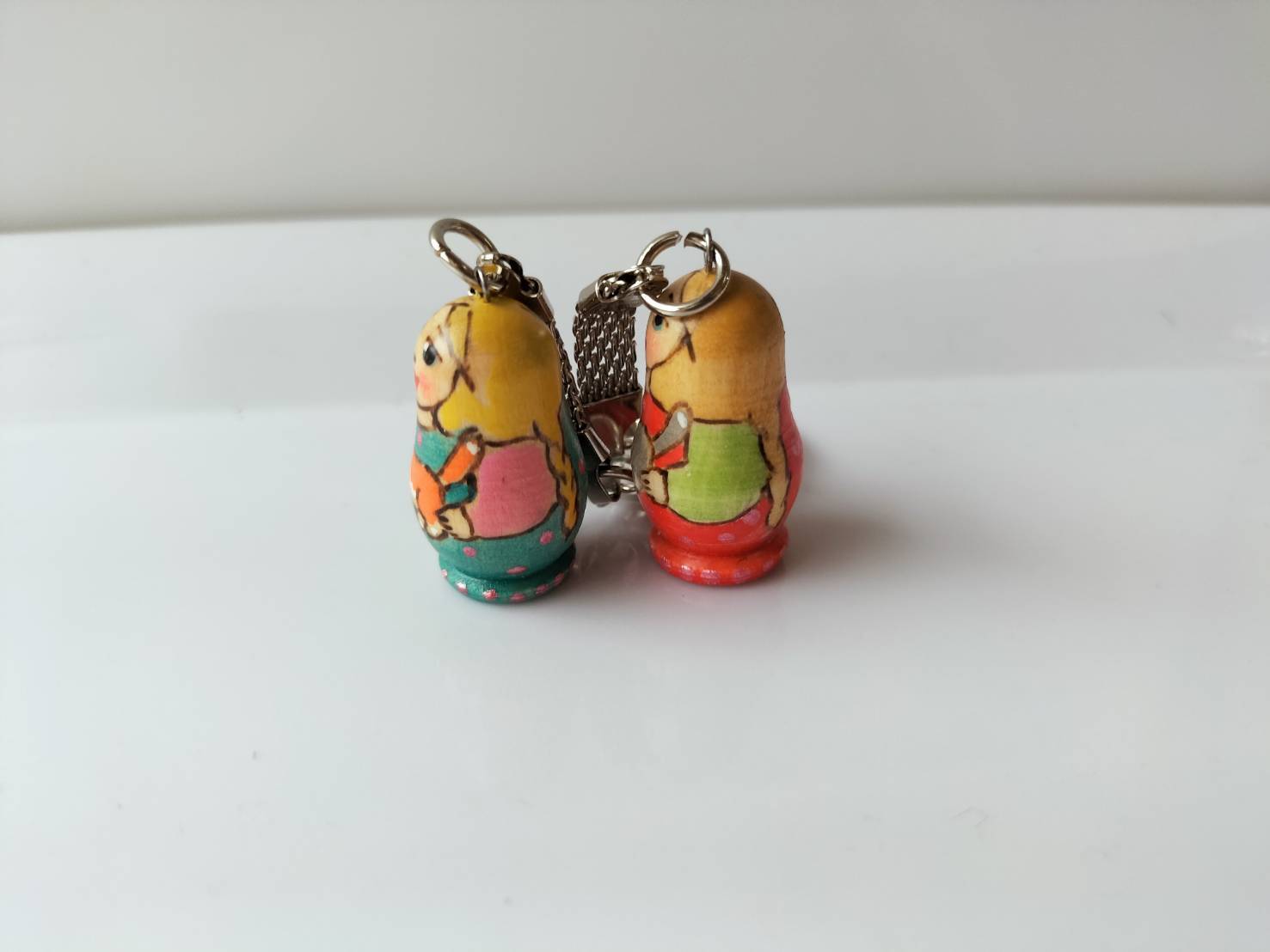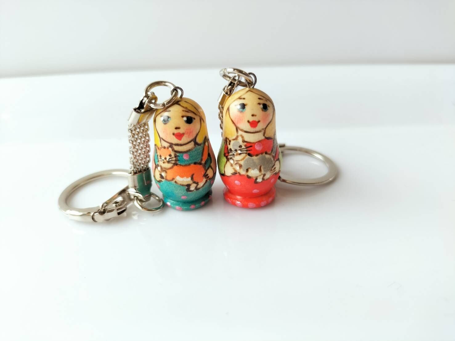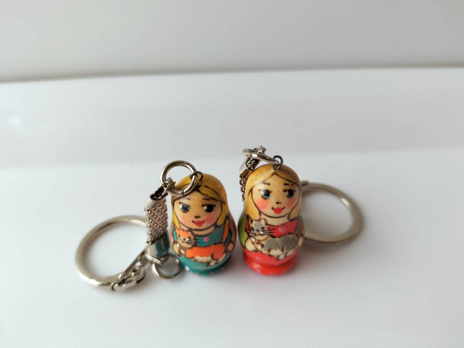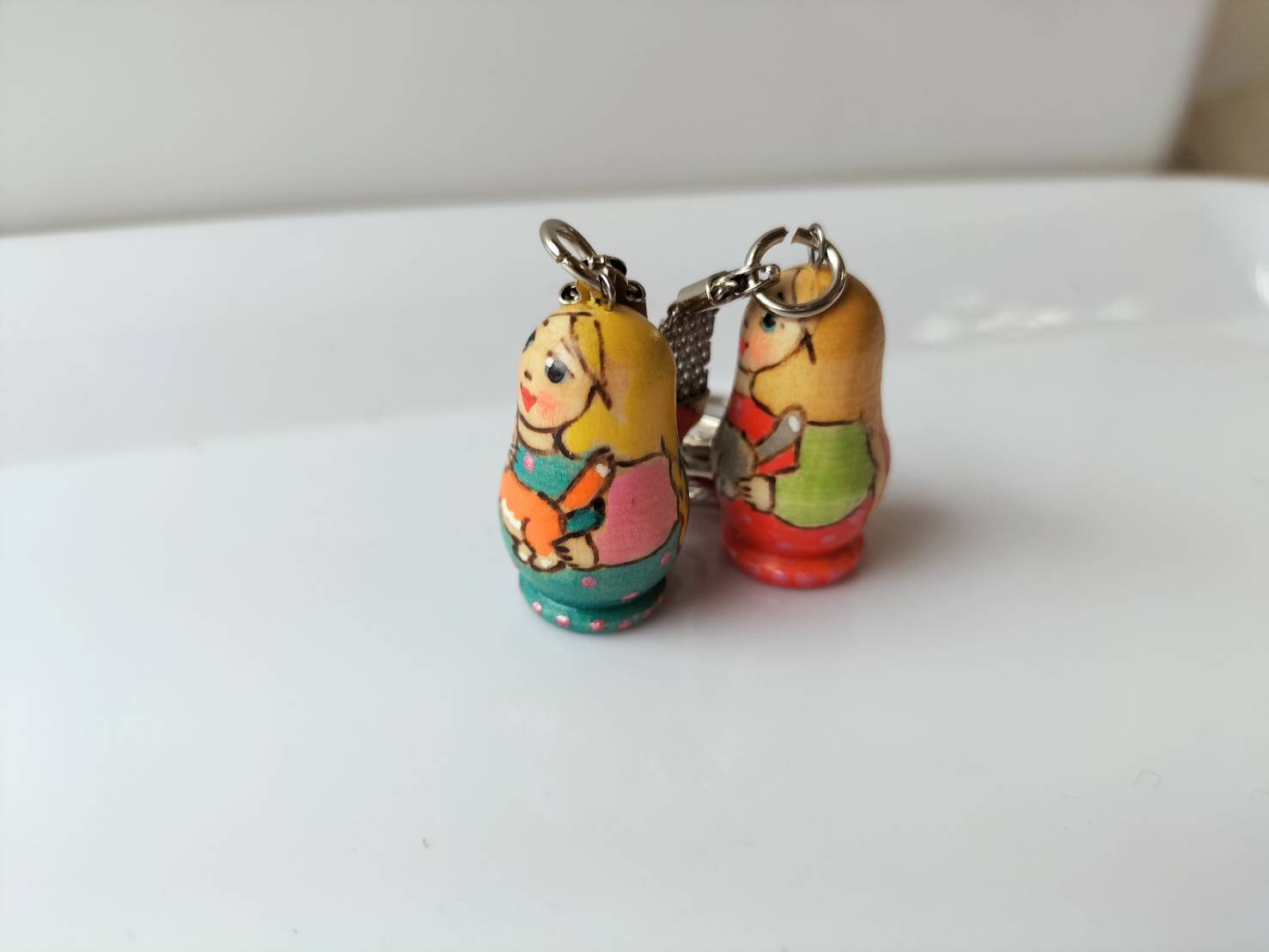 ロシアで有名なリュボーフィさんという作家のマトリョーシカのキーホルダーです。2個セット、バラ売り不可です。