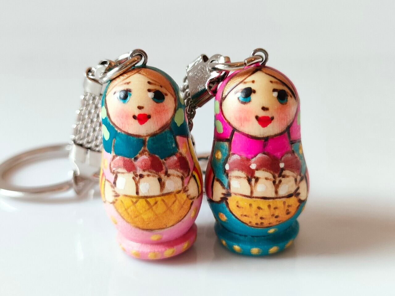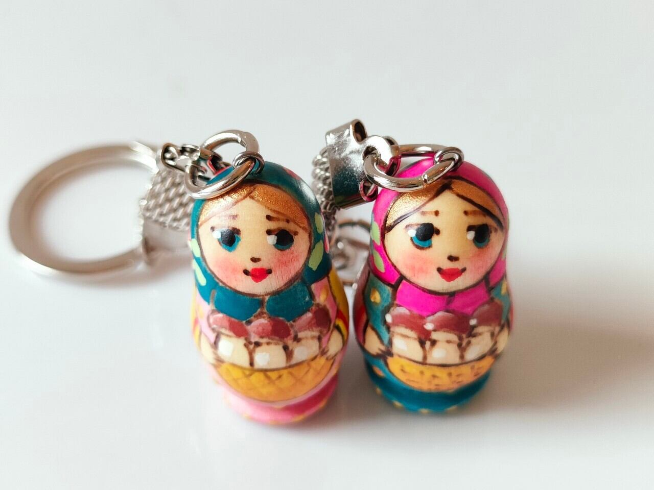 ロシアで有名なリュボーフィさんという作家のマトリョーシカの形をしたキーホルダーです。2個セット、バラ売り不可です。