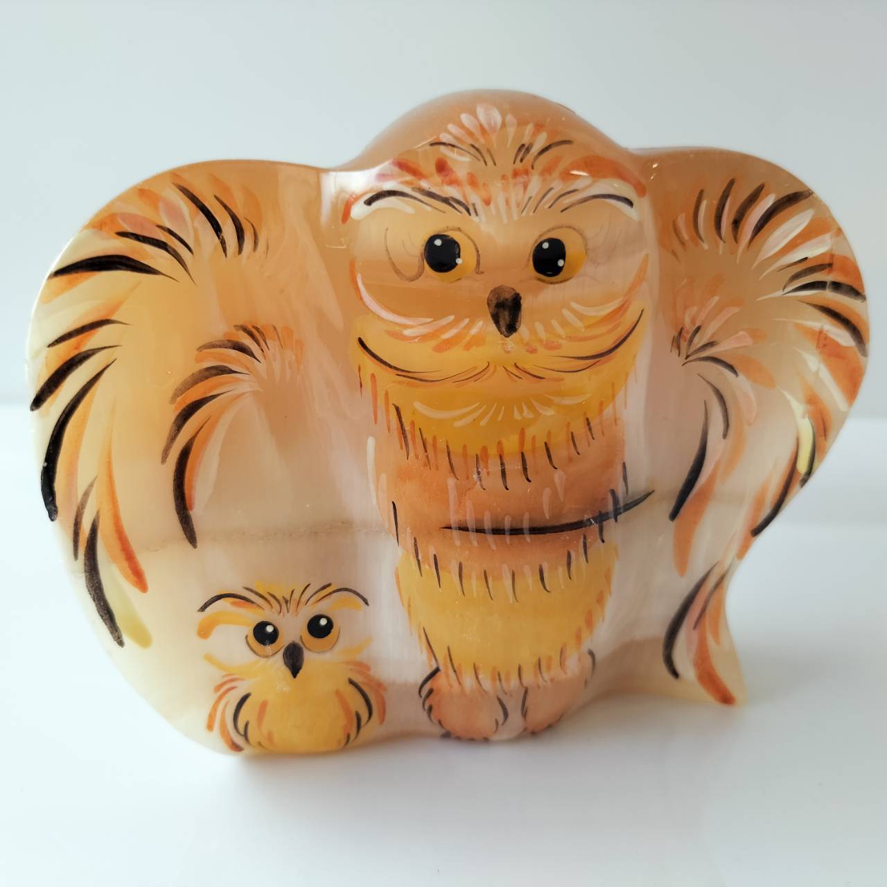 【CEL615】輸入雑貨天然石・セレナイト 水晶/ 文鎮 ふくろうの親子