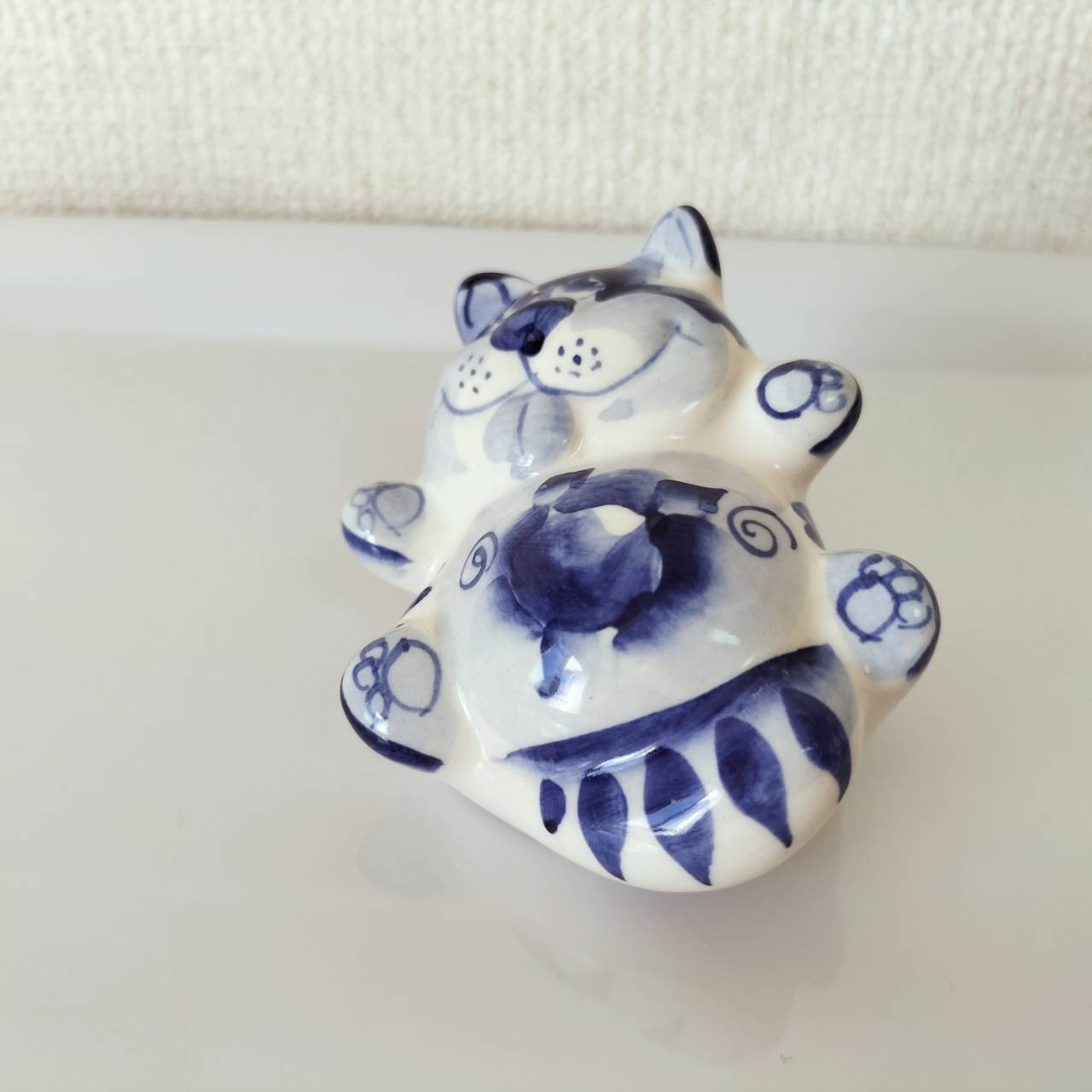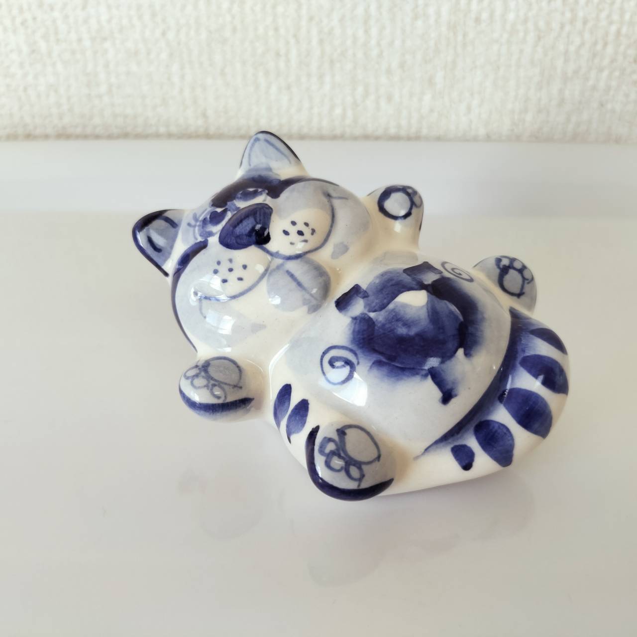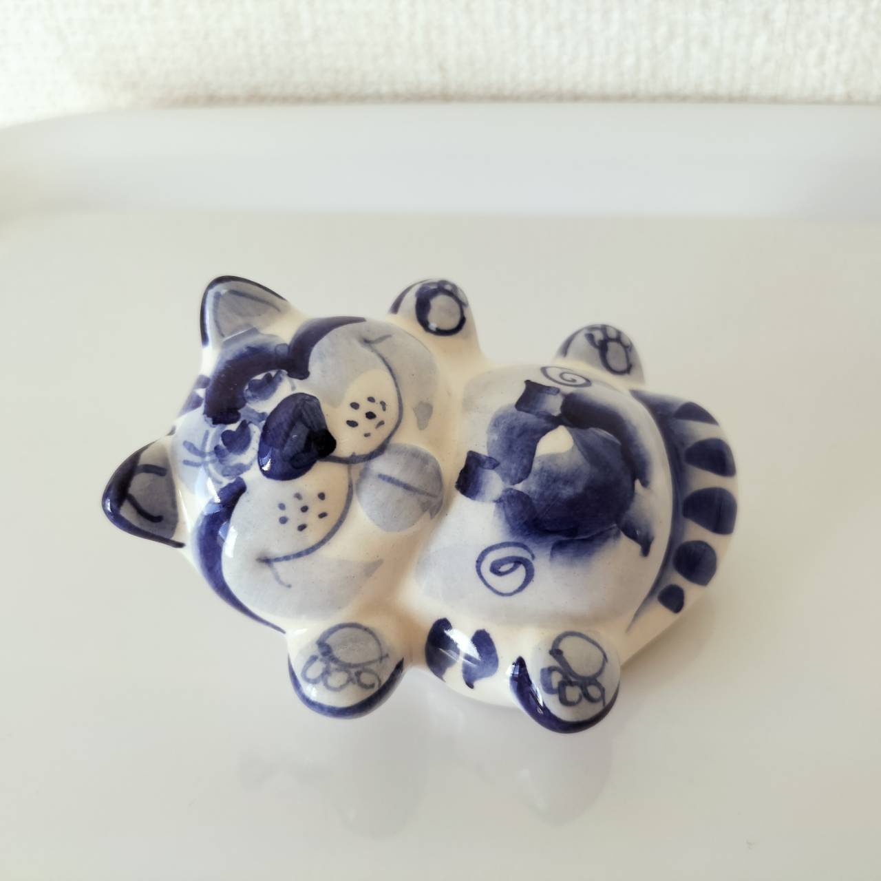 【GZ181】北欧ロシア雑貨 動物陶器 グジェリ焼 いたずらねこ