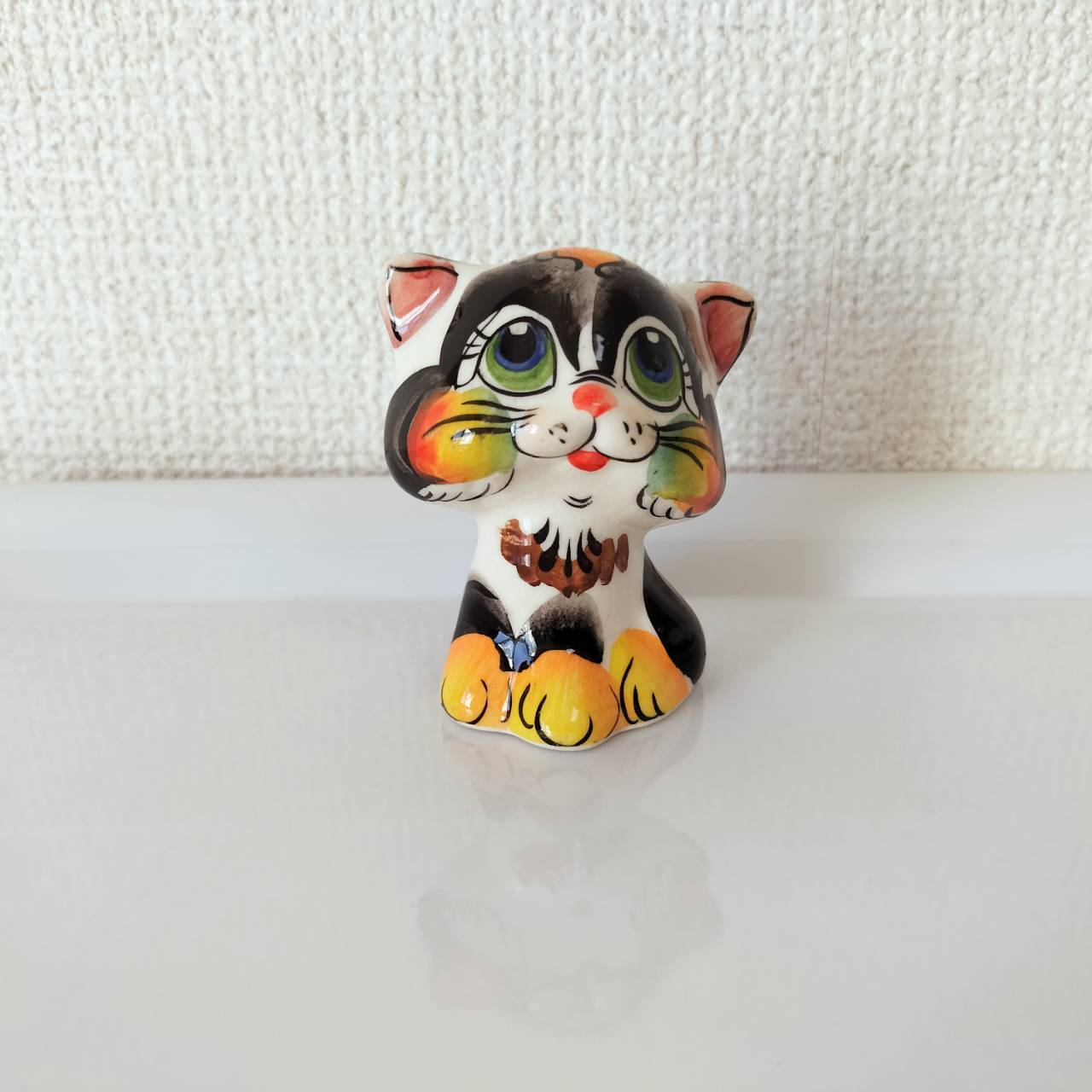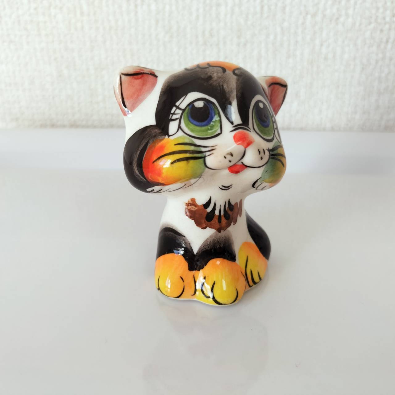 【GZ367】北欧ロシア雑貨 動物陶器 グジェリ焼 ねこ