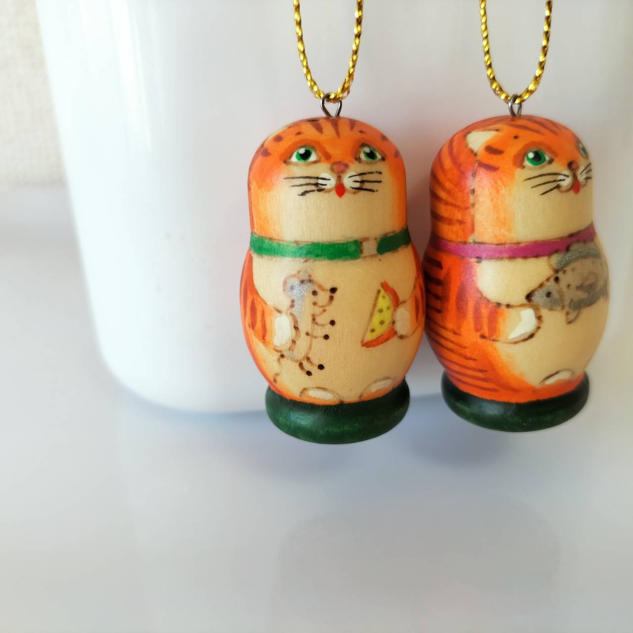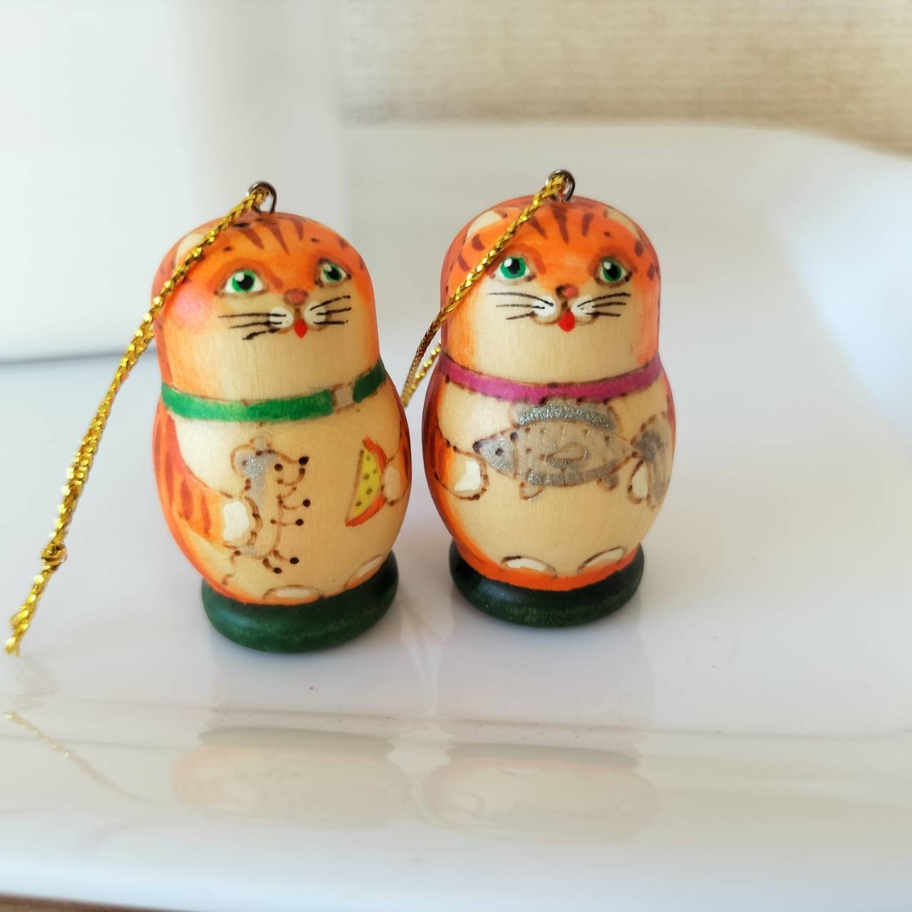 【LYH203】 北欧ロシア雑貨、ネコのキーホルダー/オーナメント 2個 リューバ