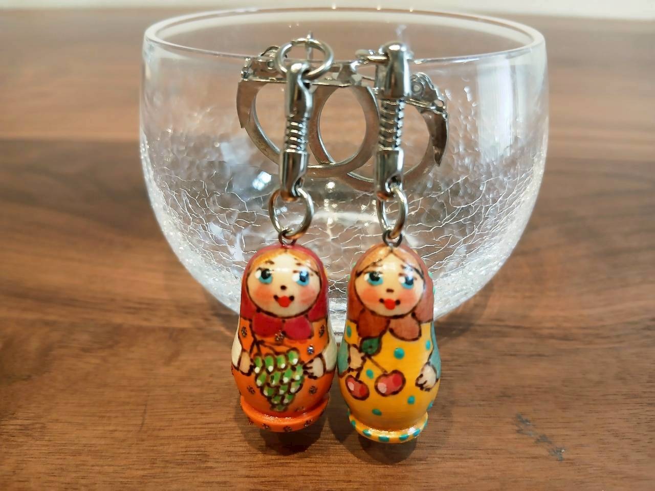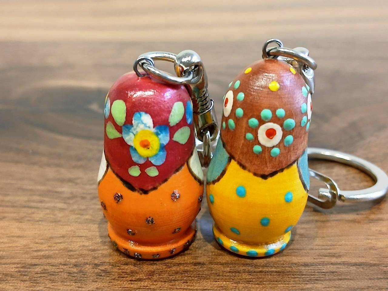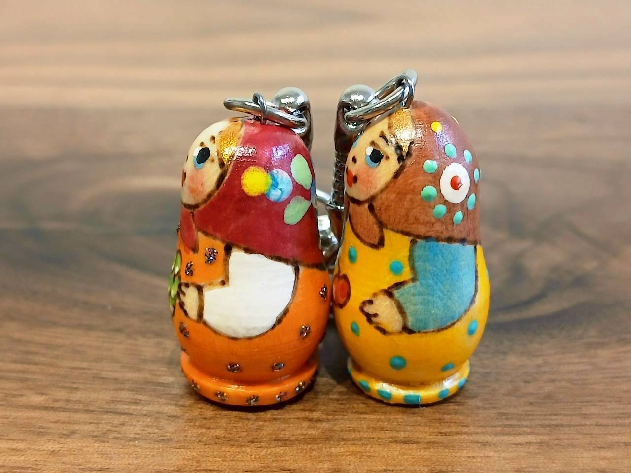 ロシアで有名なリュボーフィさんという作家のマトリョーシカの形をしたキーホルダーです。2個セット、バラ売り不可です。