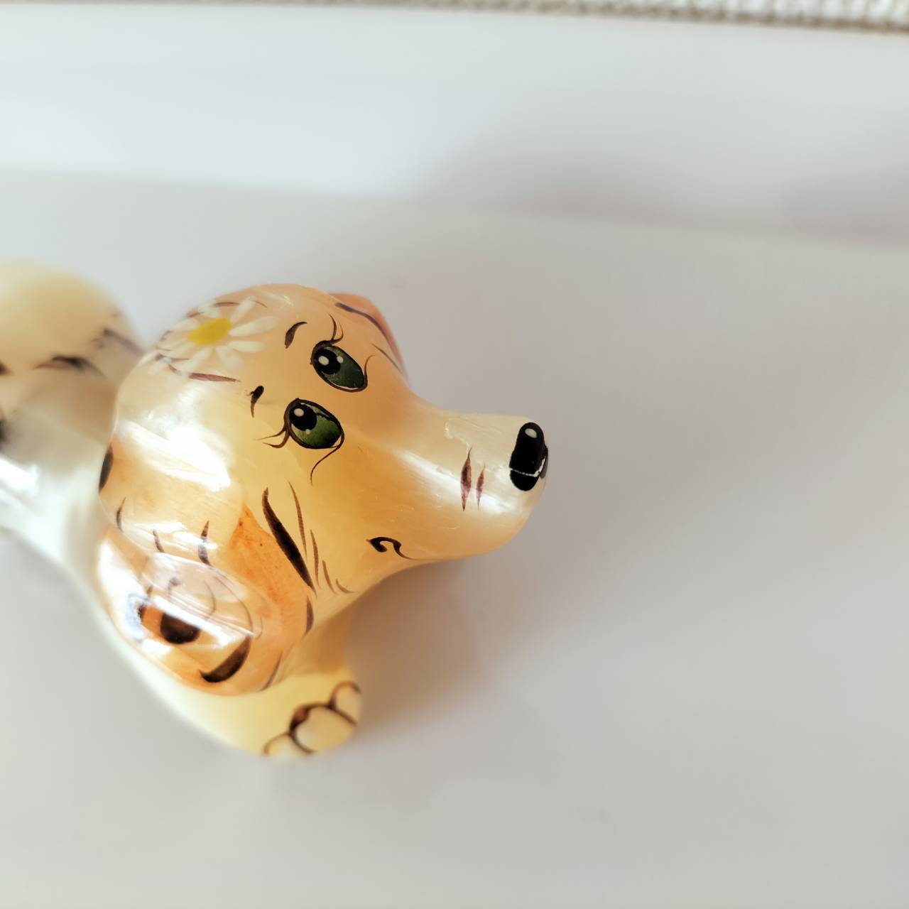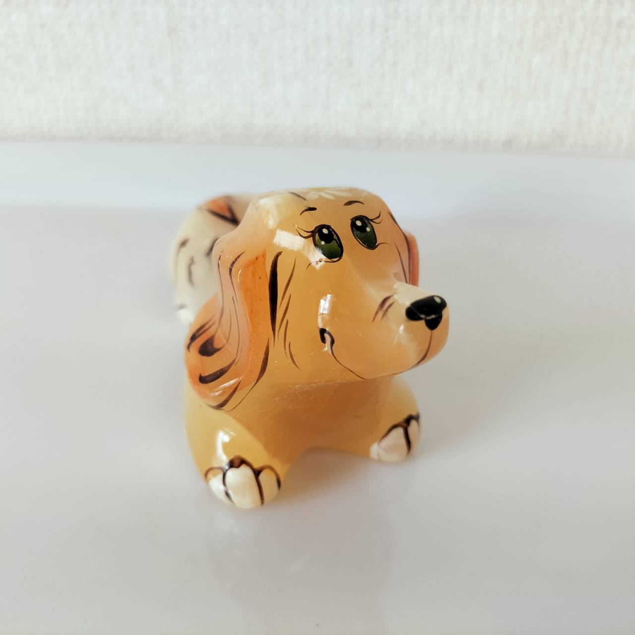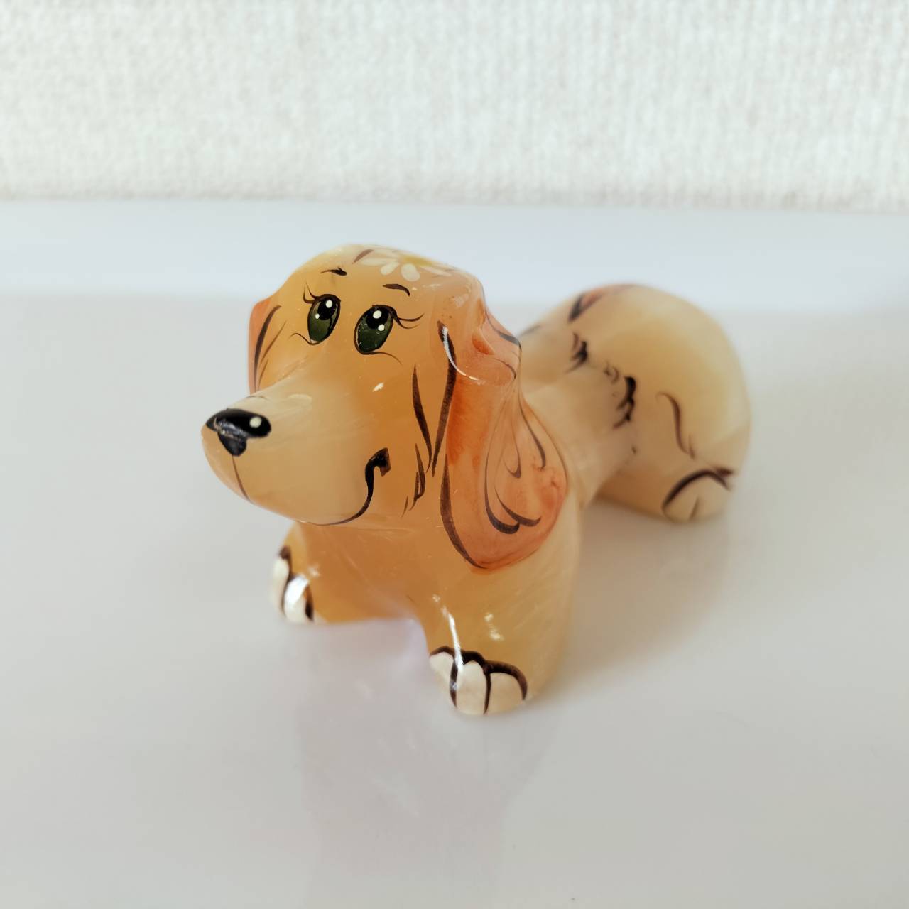 ※破損あり【CEL314】輸入雑貨天然石・セレナイト 水晶/ 文鎮 ダックスフンド