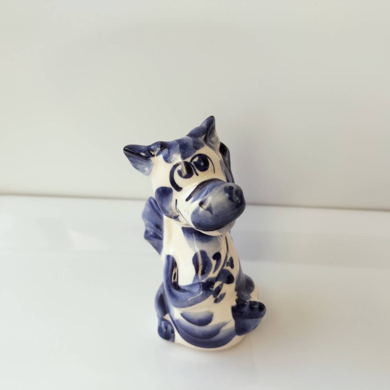 【GZ374】北欧ロシア雑貨 動物陶器 グジェリ焼 たつ