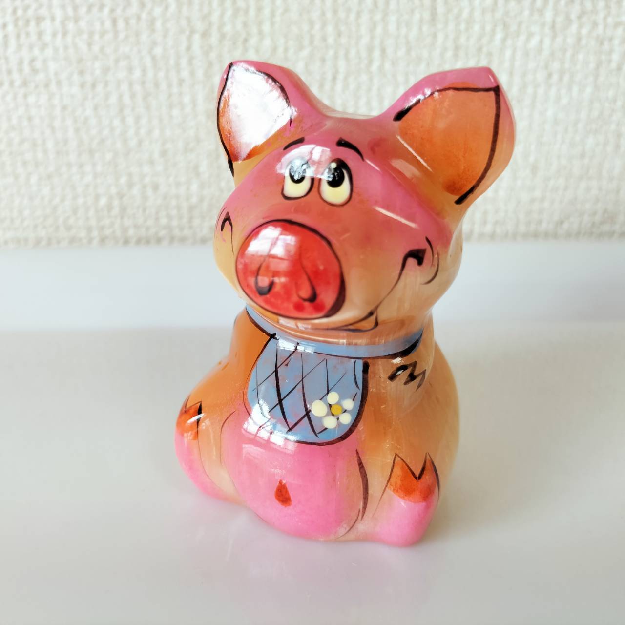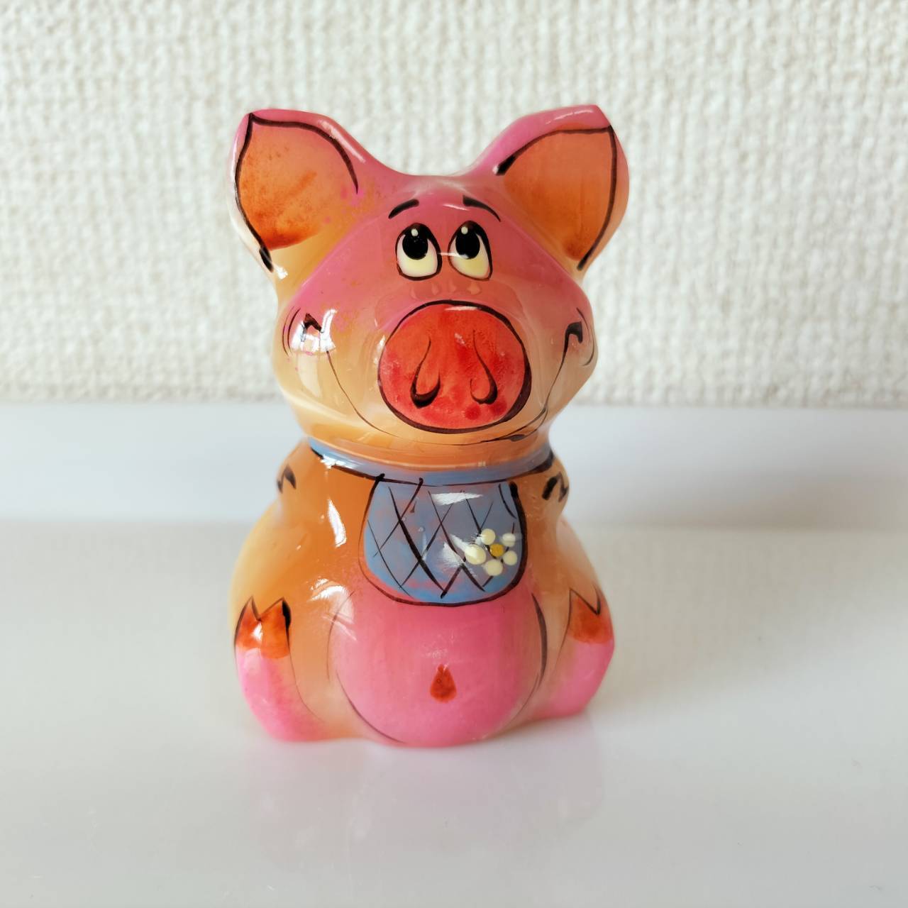 【CEL629】輸入雑貨天然石・セレナイト 水晶/ 文鎮 食いしん坊のぶた