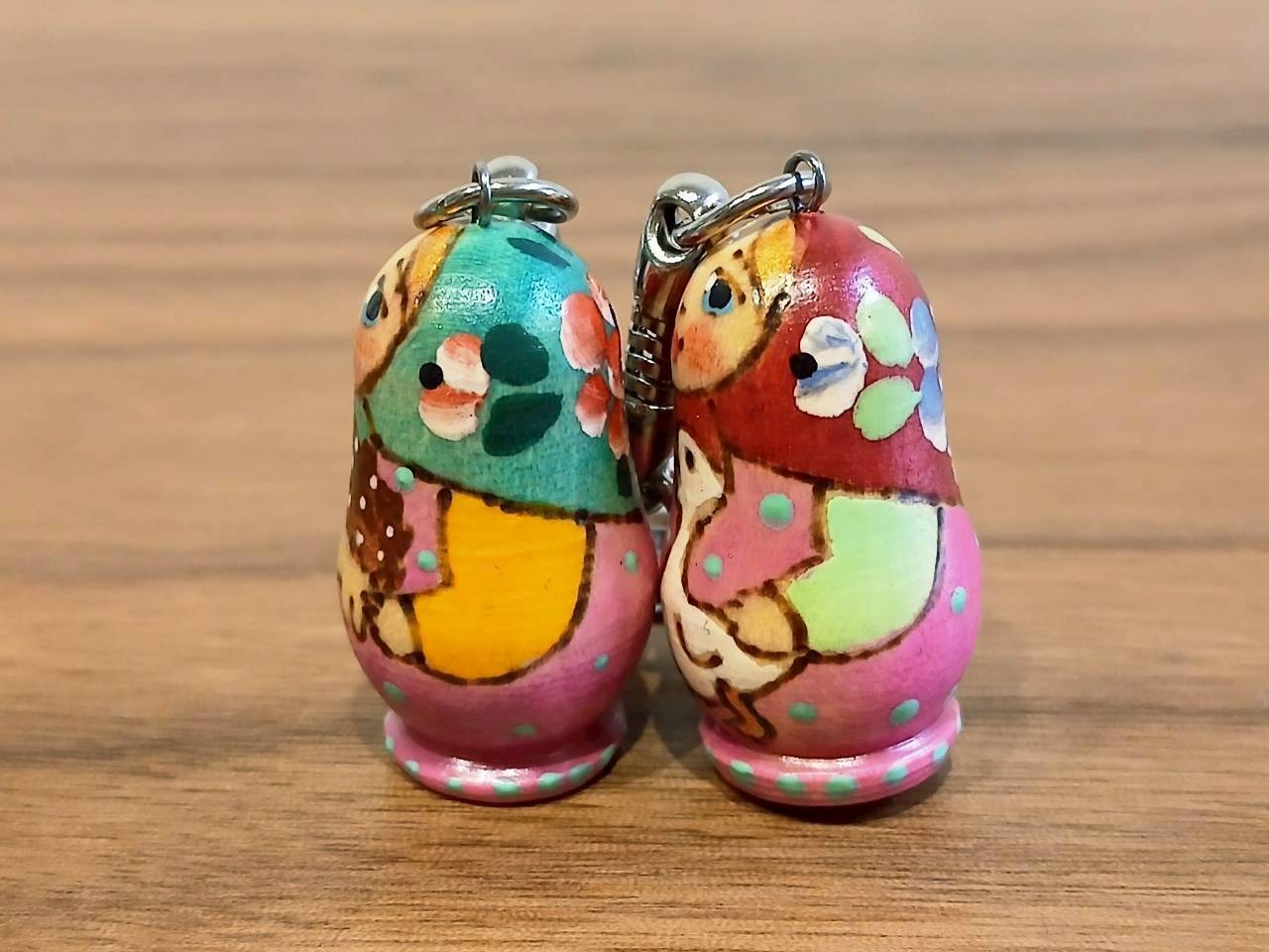 ロシアで有名なリュボーフィさんという作家のマトリョーシカの形をしたキーホルダーです。2個セット、バラ売り不可です。