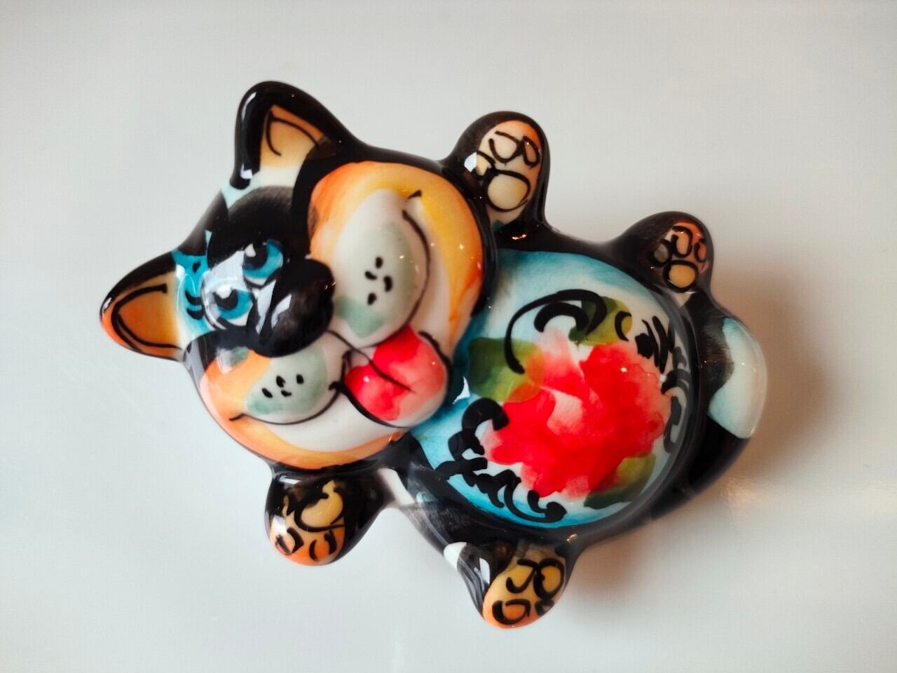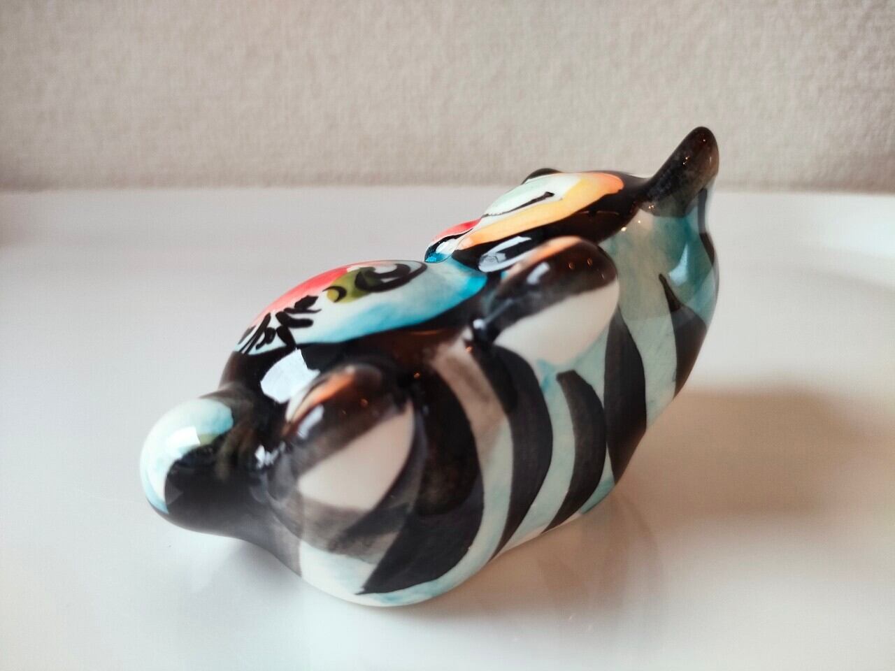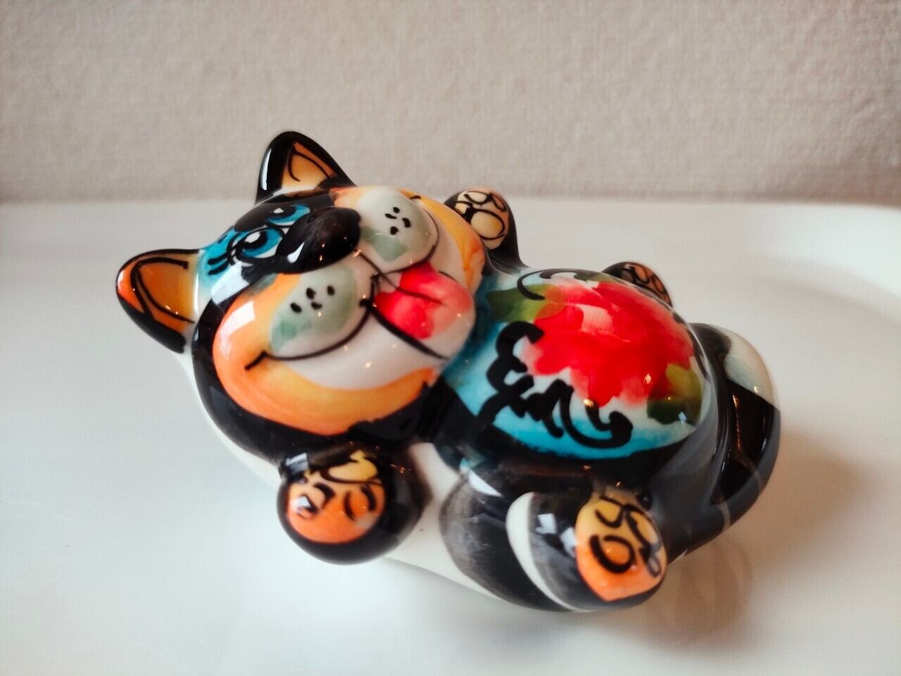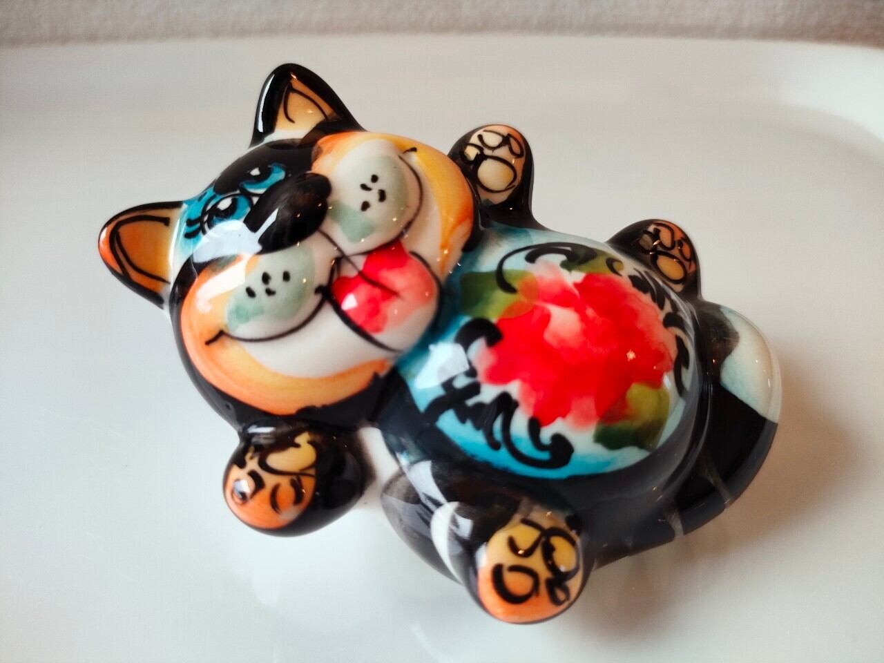 【GZ209】北欧ロシア雑貨 動物陶器 グジェリ焼 ぐうたらねこ