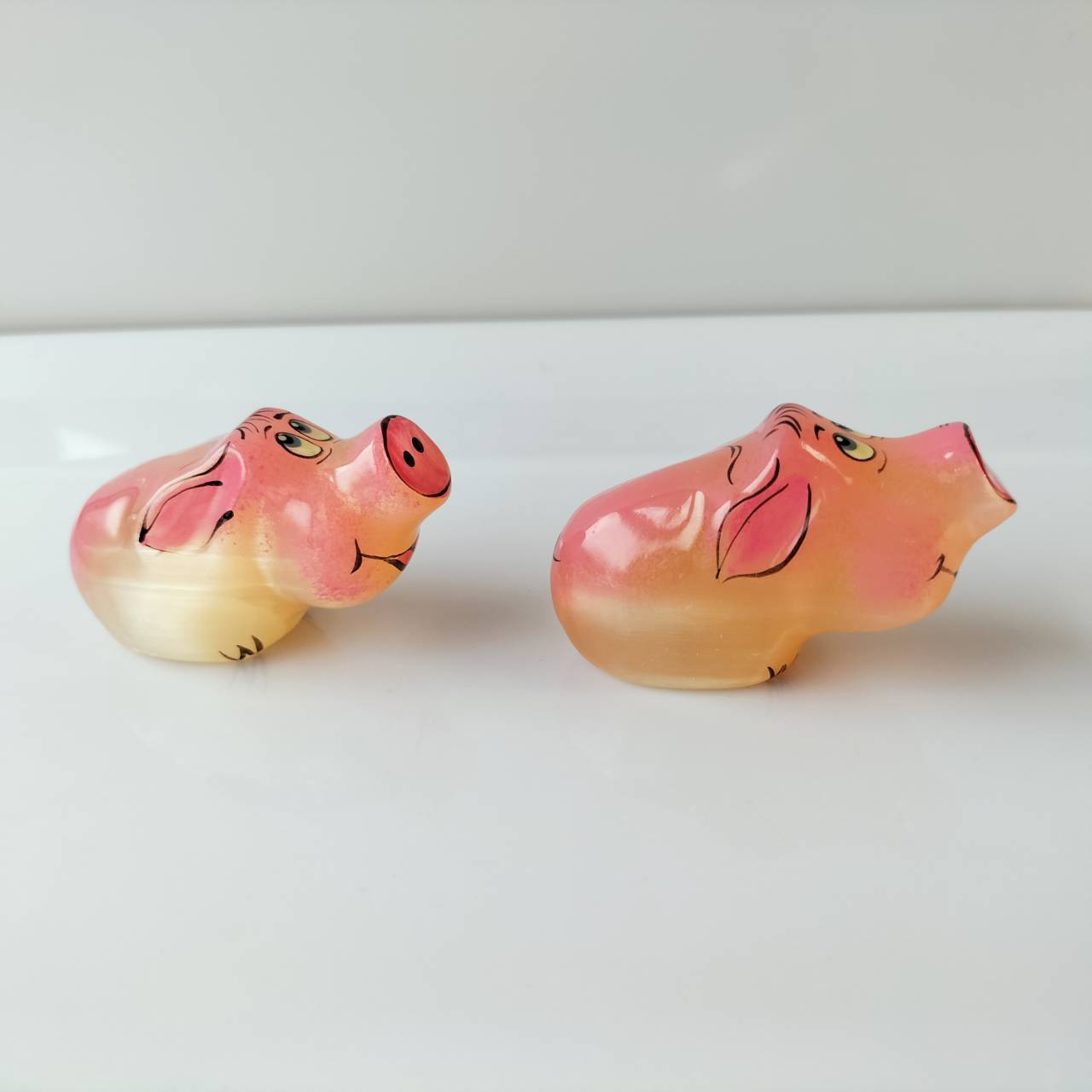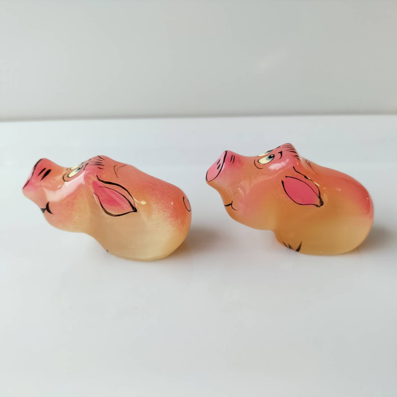 【CEL633】輸入雑貨天然石・セレナイト 水晶/ 文鎮 ぶた兄弟