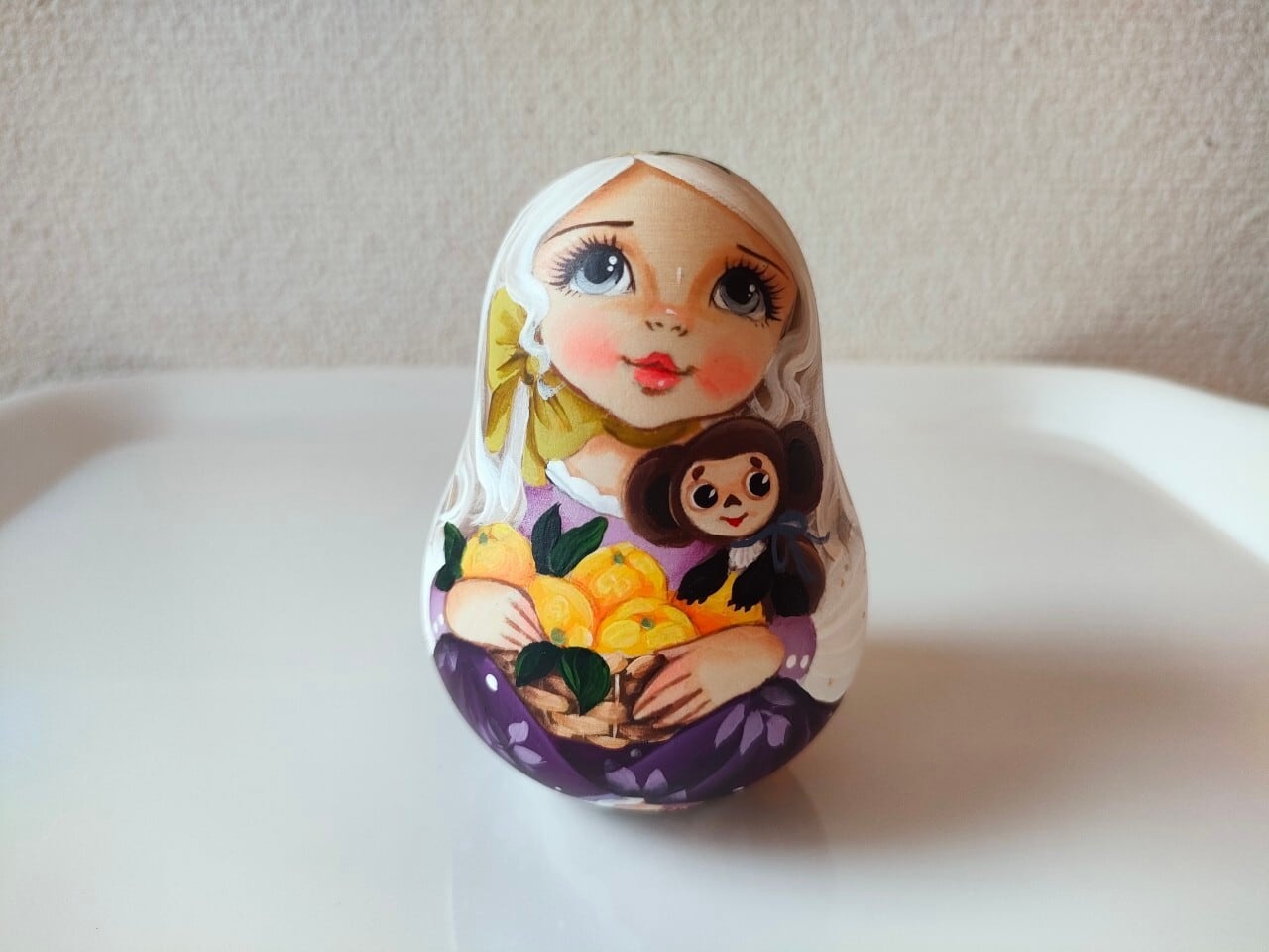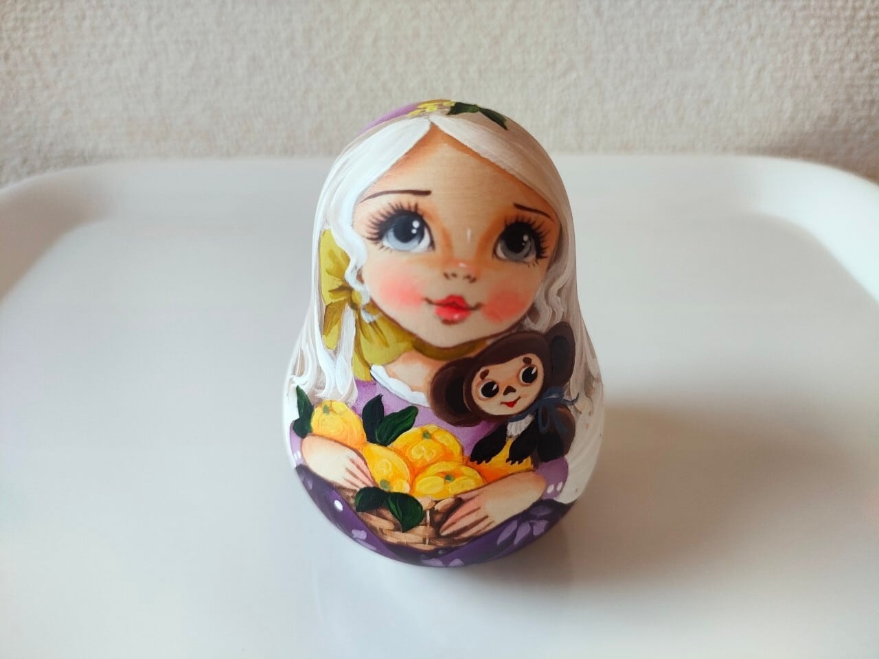 ロシアで有名なスヴェトラーナさんという作家の中サイズの起き上がりこぼしです。前後左右に転がすと、カランコロンと音が出て、元の位置に戻ります。