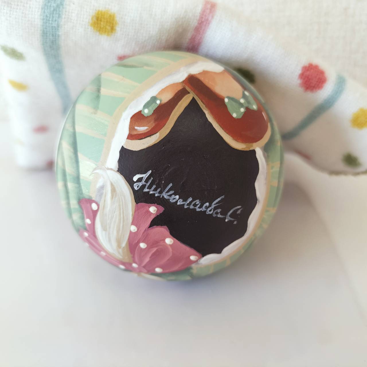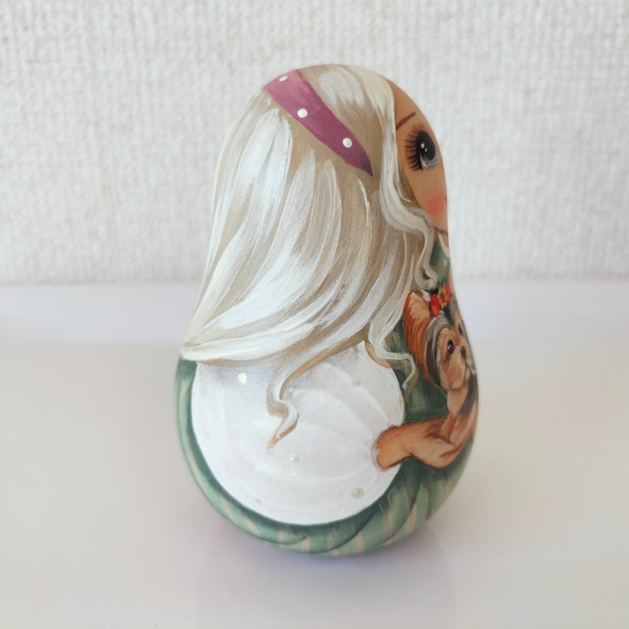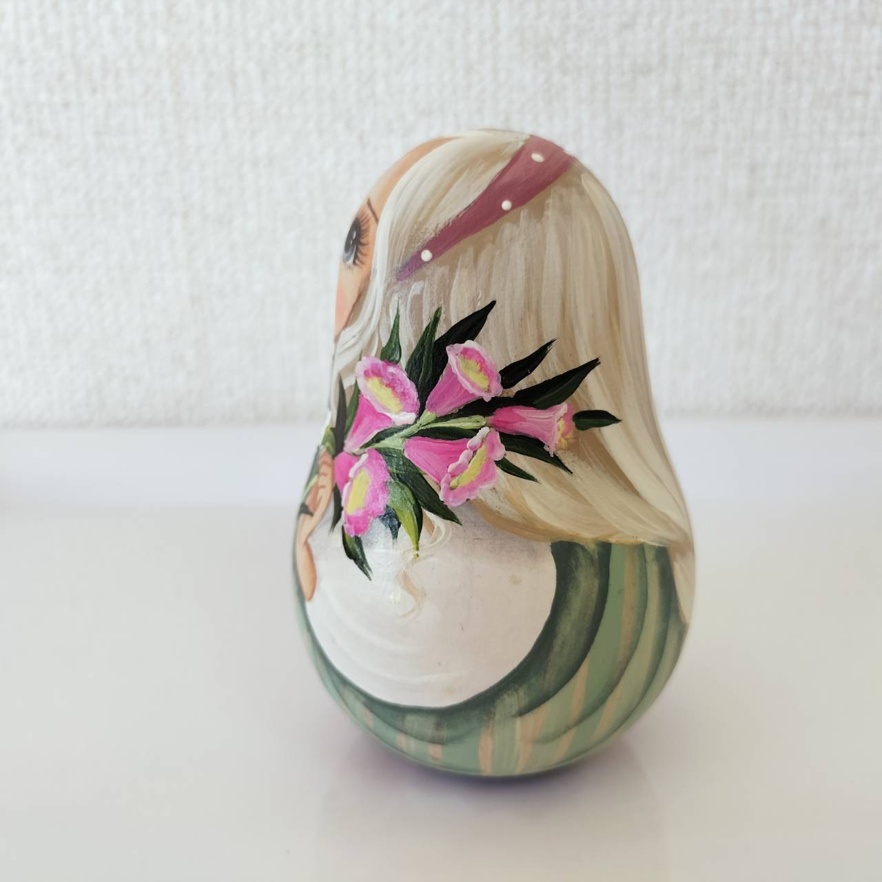 ロシアで有名なスヴェトラーナさんという作家の起き上がりこぼしです。前後左右に転がすと、カランコロンと音が出て、元の位置に戻ります。