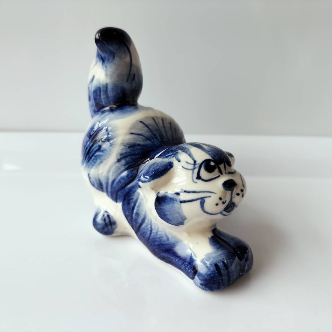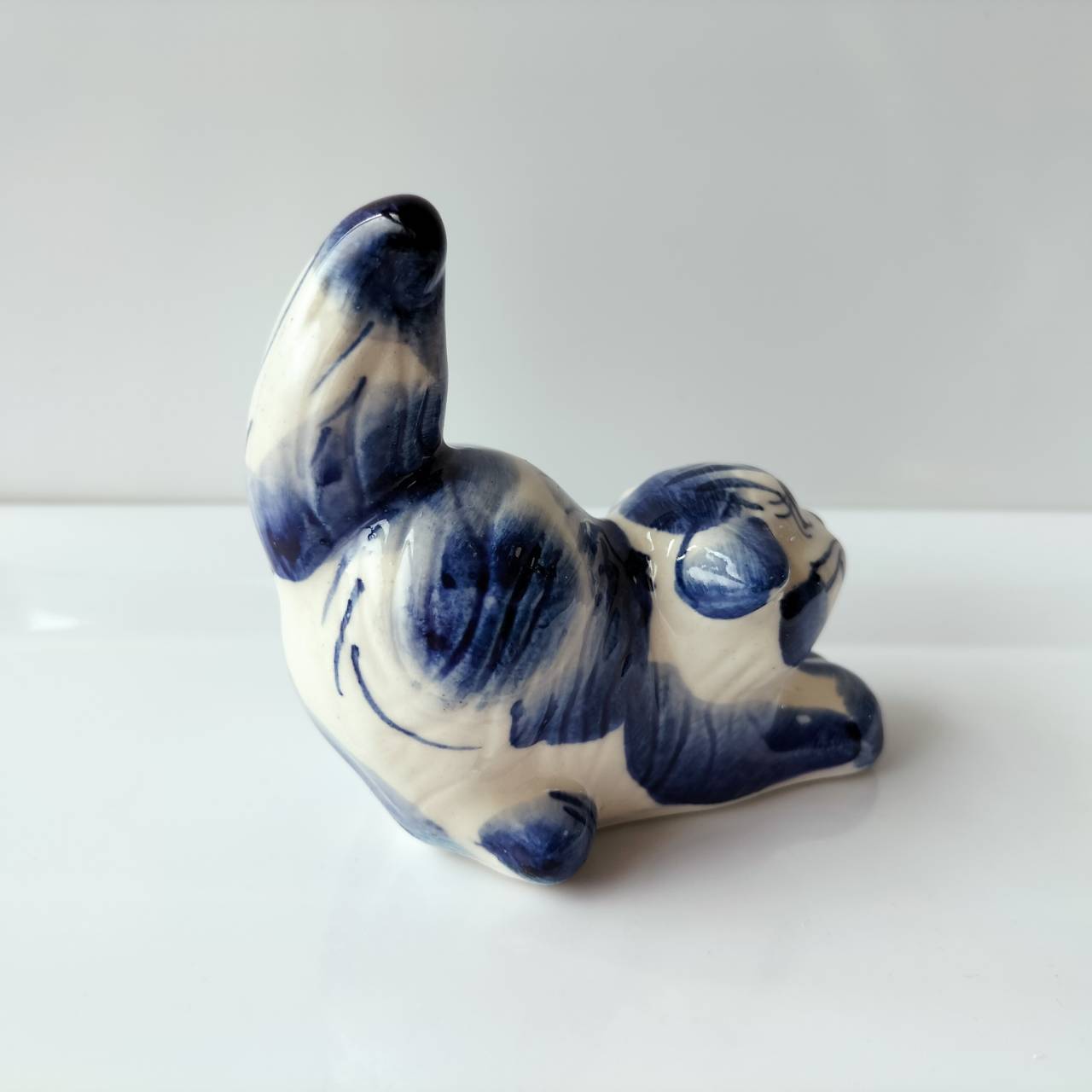 【GZ245】北欧ロシア雑貨 動物陶器 グジェリ焼 ねこ