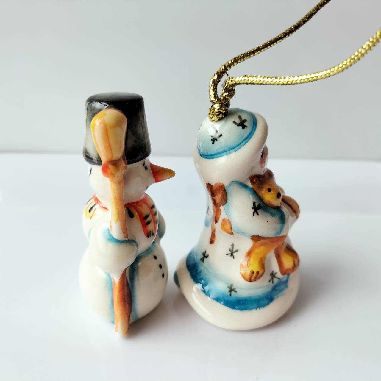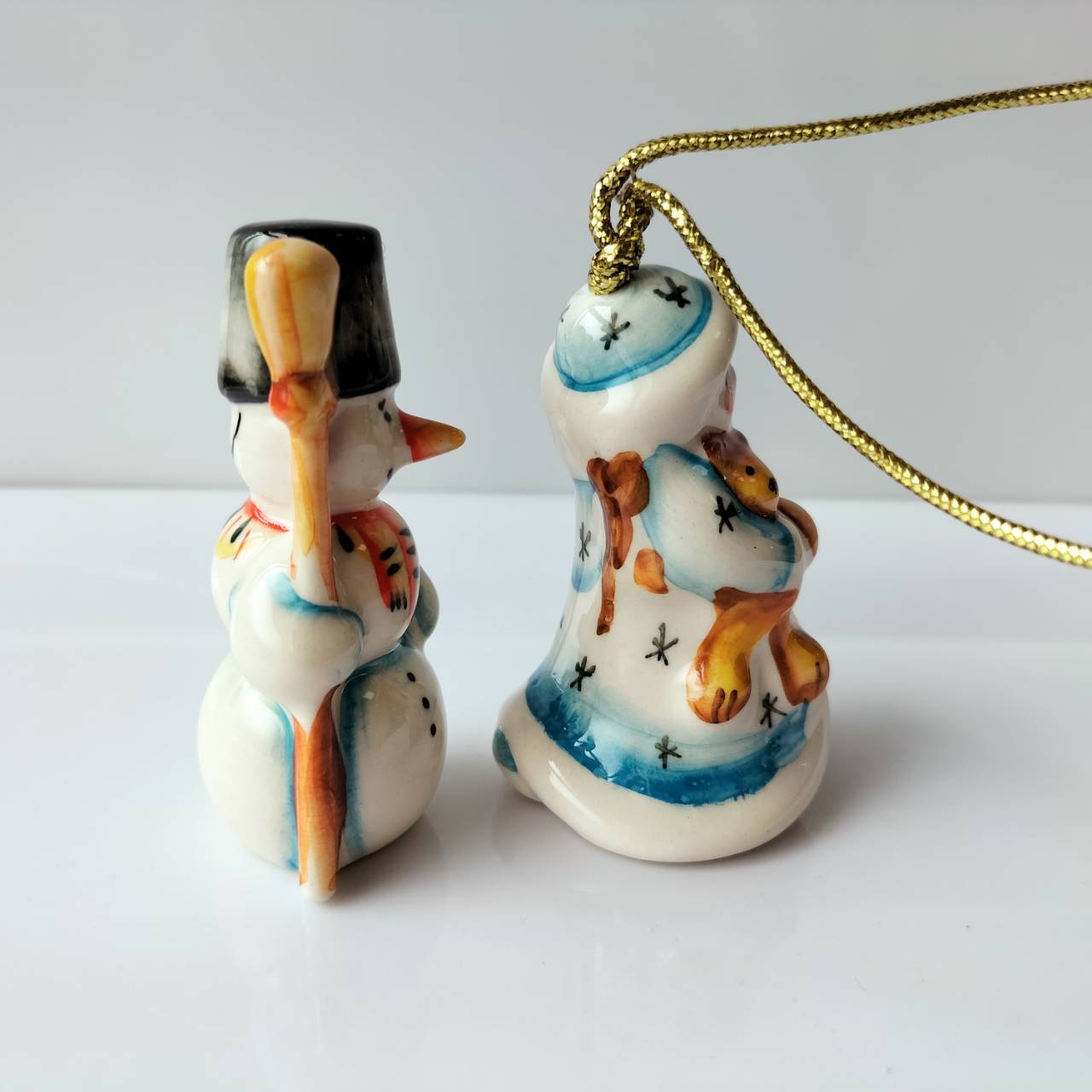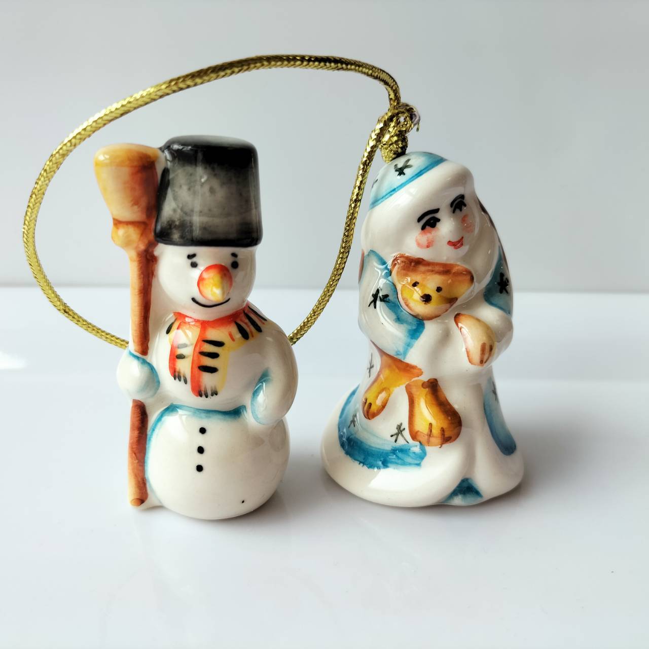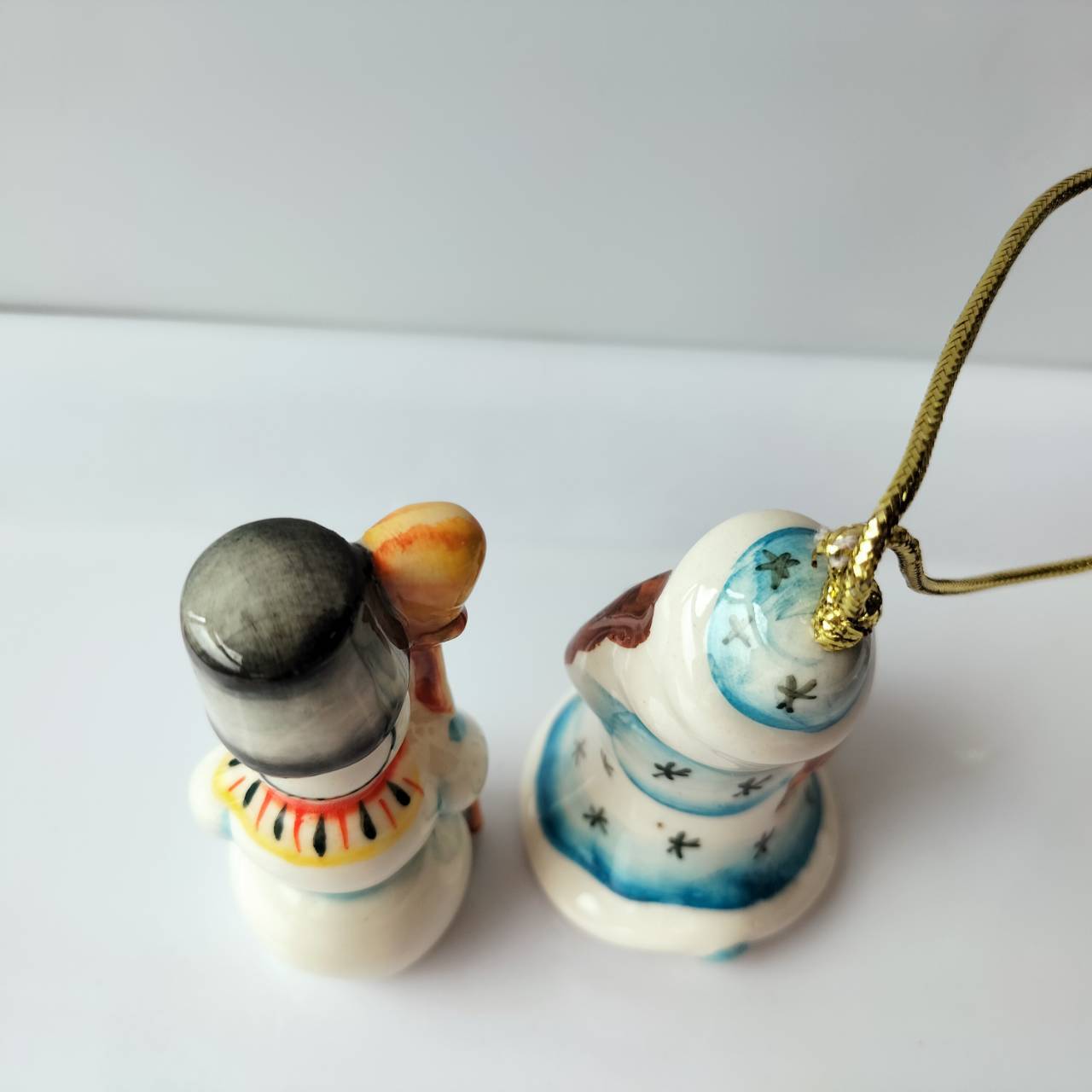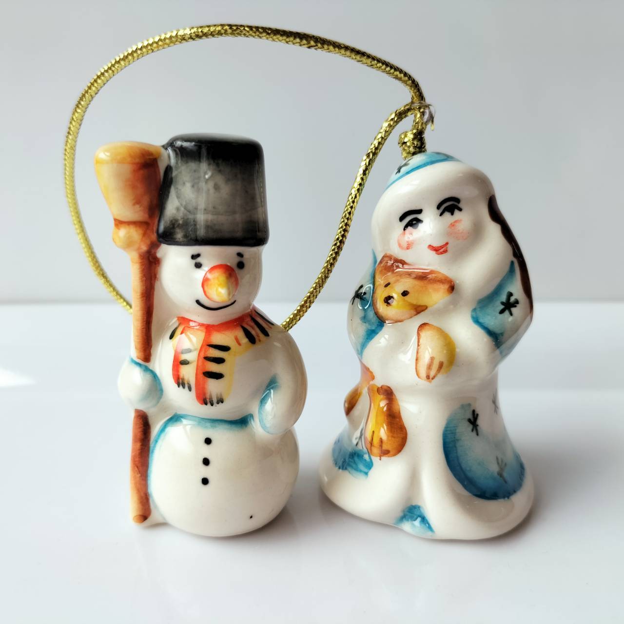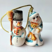 【GZ386】北欧ロシア雑貨 動物陶器 グジェリ焼 雪娘と雪だるま